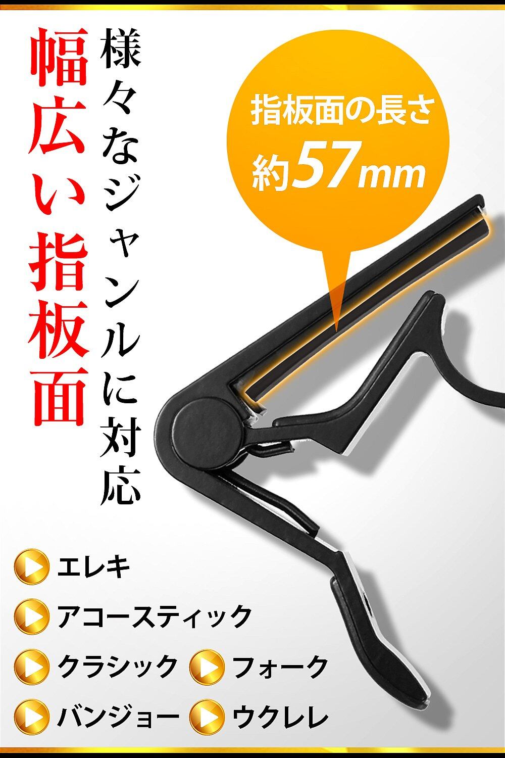 ? 【オールラウンドカポ】指板面の長さを約57mmも確保しているのでエレキギターはもちろん、アコースティックギターやクラシックギターにもお使い頂けます。複数の種類のギターをお持ちの場合それに合わせてカポも変える必要があり、とても管理が面倒ですが、このカポ Type-Rはそんなあなたの手間を少しでも減らすべく幅広いギターに対応可能です。