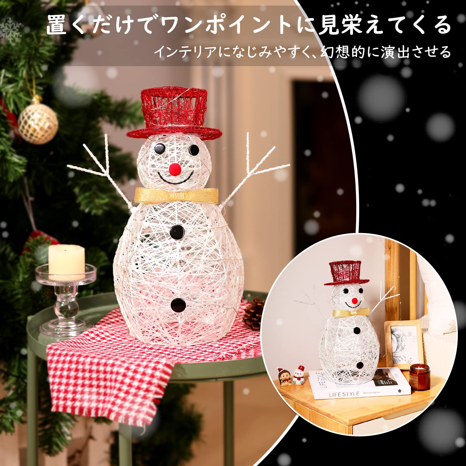 「幻想的に演出」雪だるま表面には複数のLEDライトつきワイヤーで巻かれており、3本のAA電池とUSB給電の2つ可動させる扱いやすい簡単な仕組みより、スイッチを入れるだけで、すぐに柔らかい輝きを放ち、お部屋を幻想的に演出させ、ほんわかした灯りの中で、ゆっくりとした時間を過ごせます。