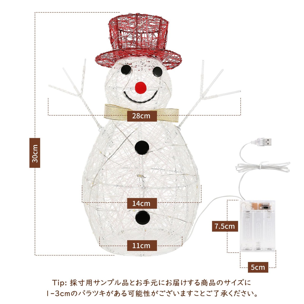 デコレーションライト Lewondr デスクライト 雪だるまモチーフ 置き型 32cm高さ 飾りライト LEDライト 電池&USB 2Way給電 オーナメントライト クリスマスライト 母の日/誕生日/祝日 お祝いプレゼント