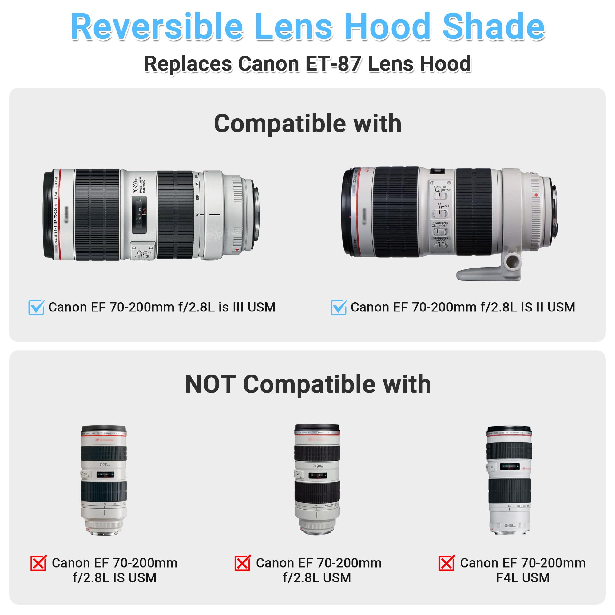 本商品はCanon ET-87レンズフードと互換できるレンズフードです。