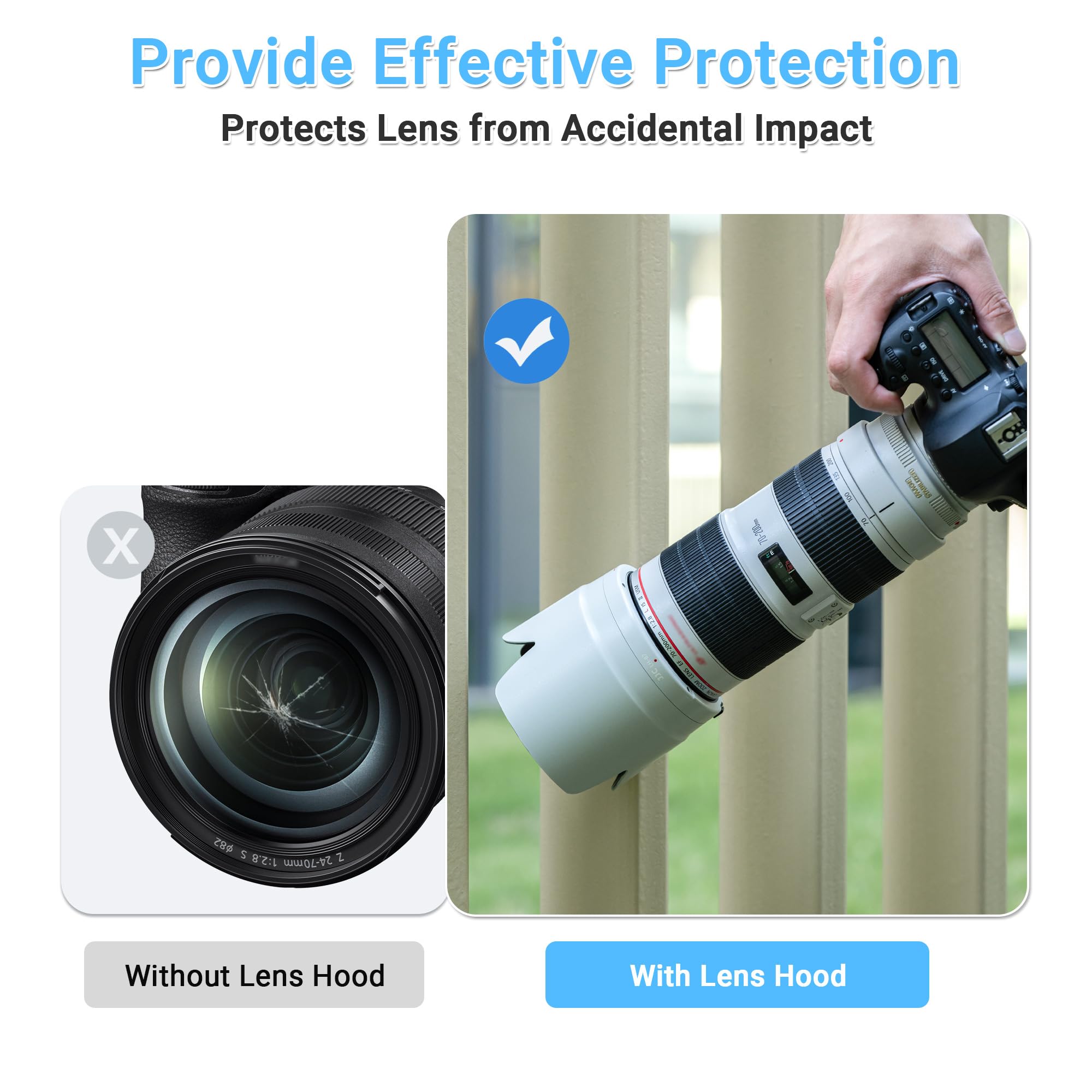 レンズフードをレンズに着装して、レンズの先端を延長することになります。