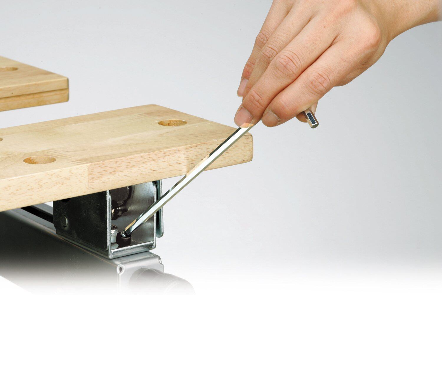 六角ネジの穴方向に関係なく斜めからでも強力締め付け可能