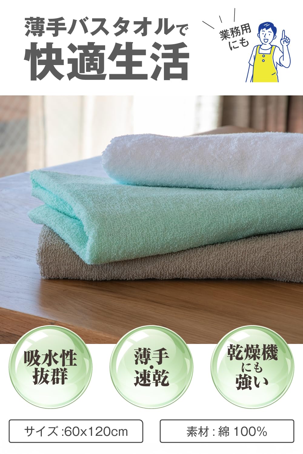 【新着】バスタオル 薄手 綿100% 120x60 cm 業務用 まとめ買い (白 6枚)