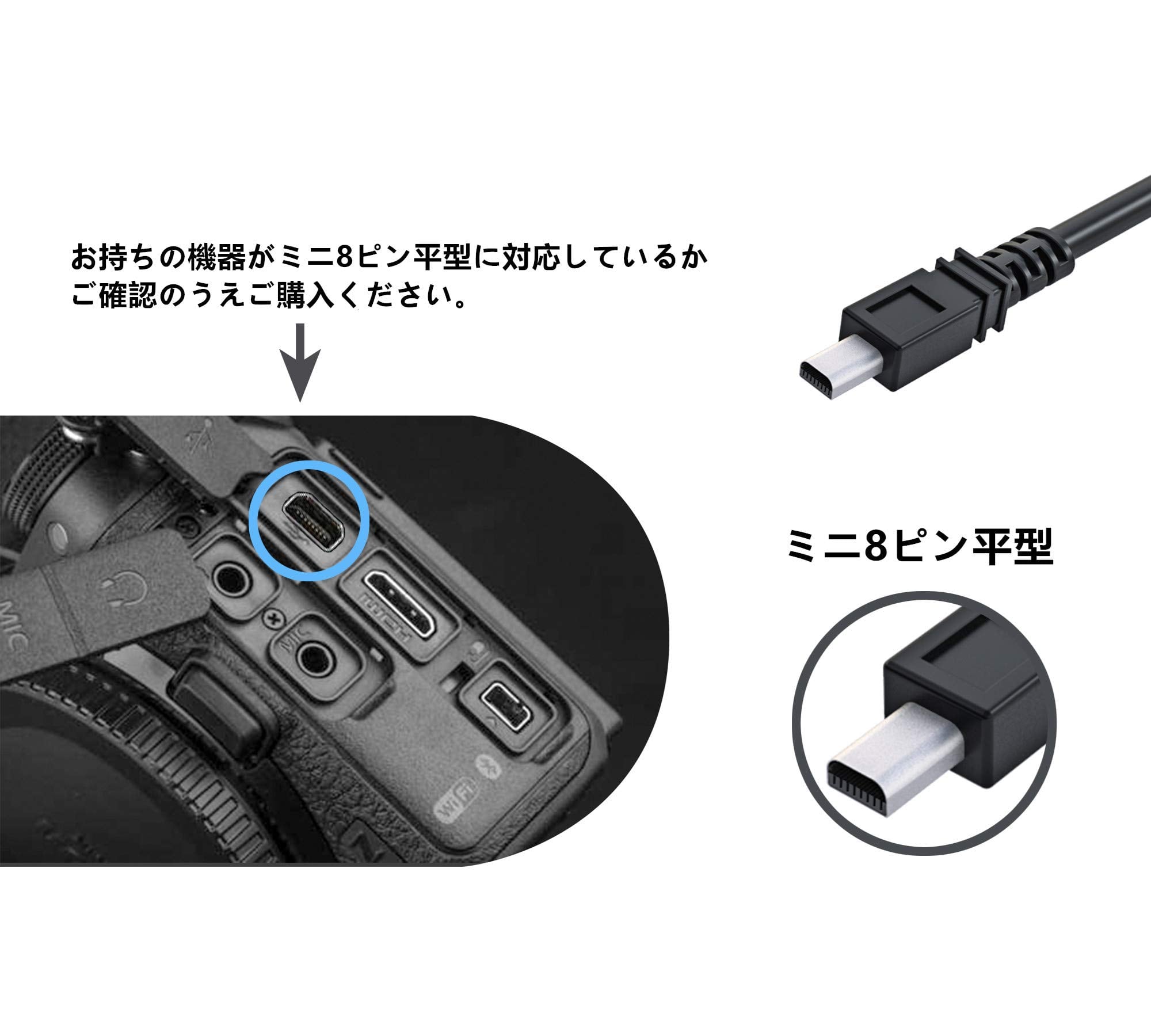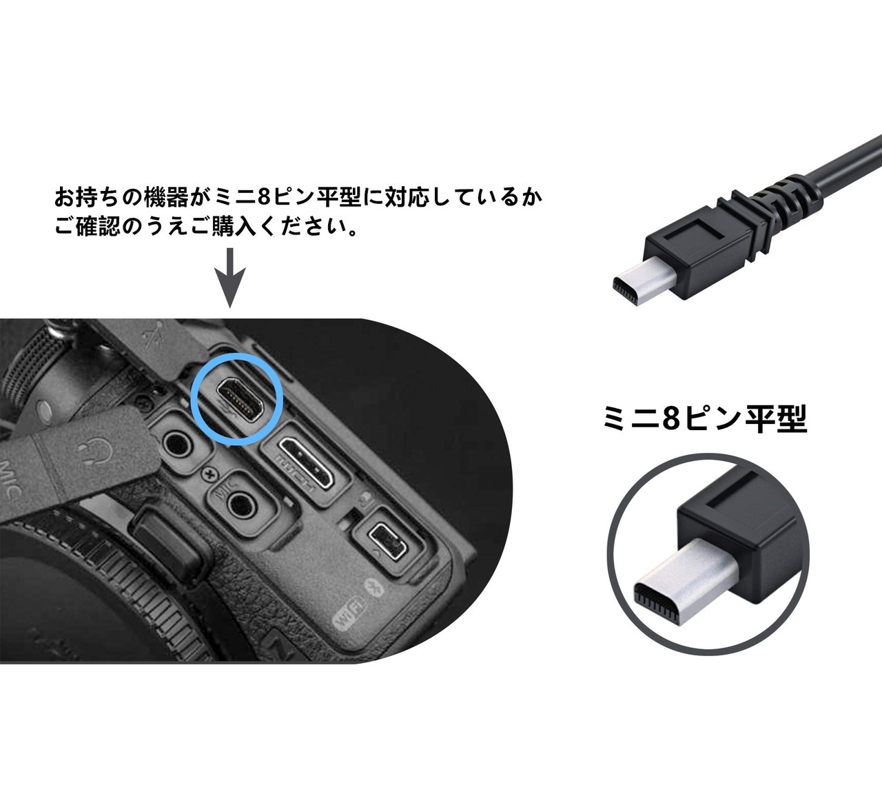 USB ミニ8ピン平型 ケーブル デジタルカメラ用 1m wuernine USB A-mini 8pin Nikon用 ニコン用 富士フイルムなど対応 カメラ用コード