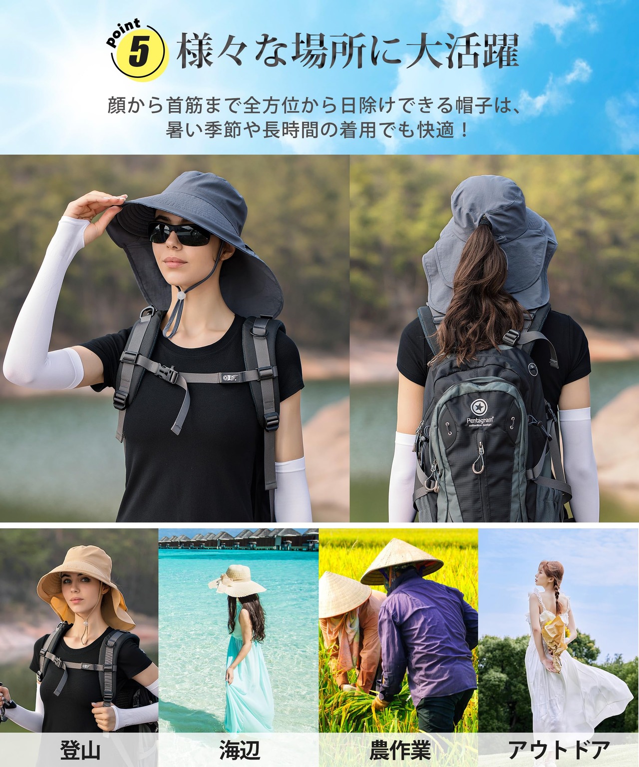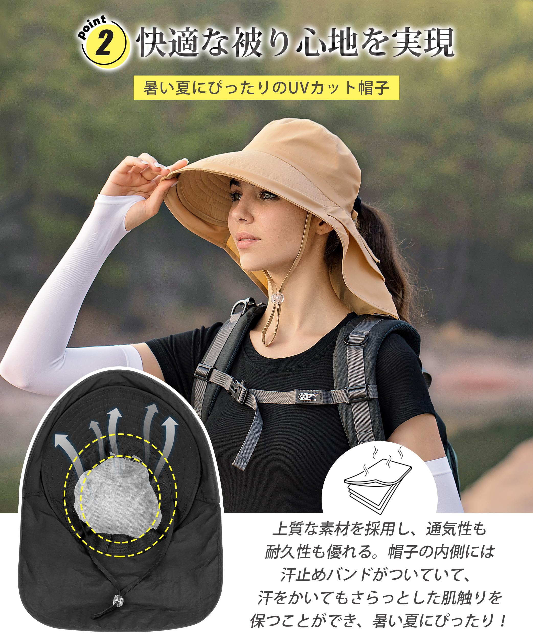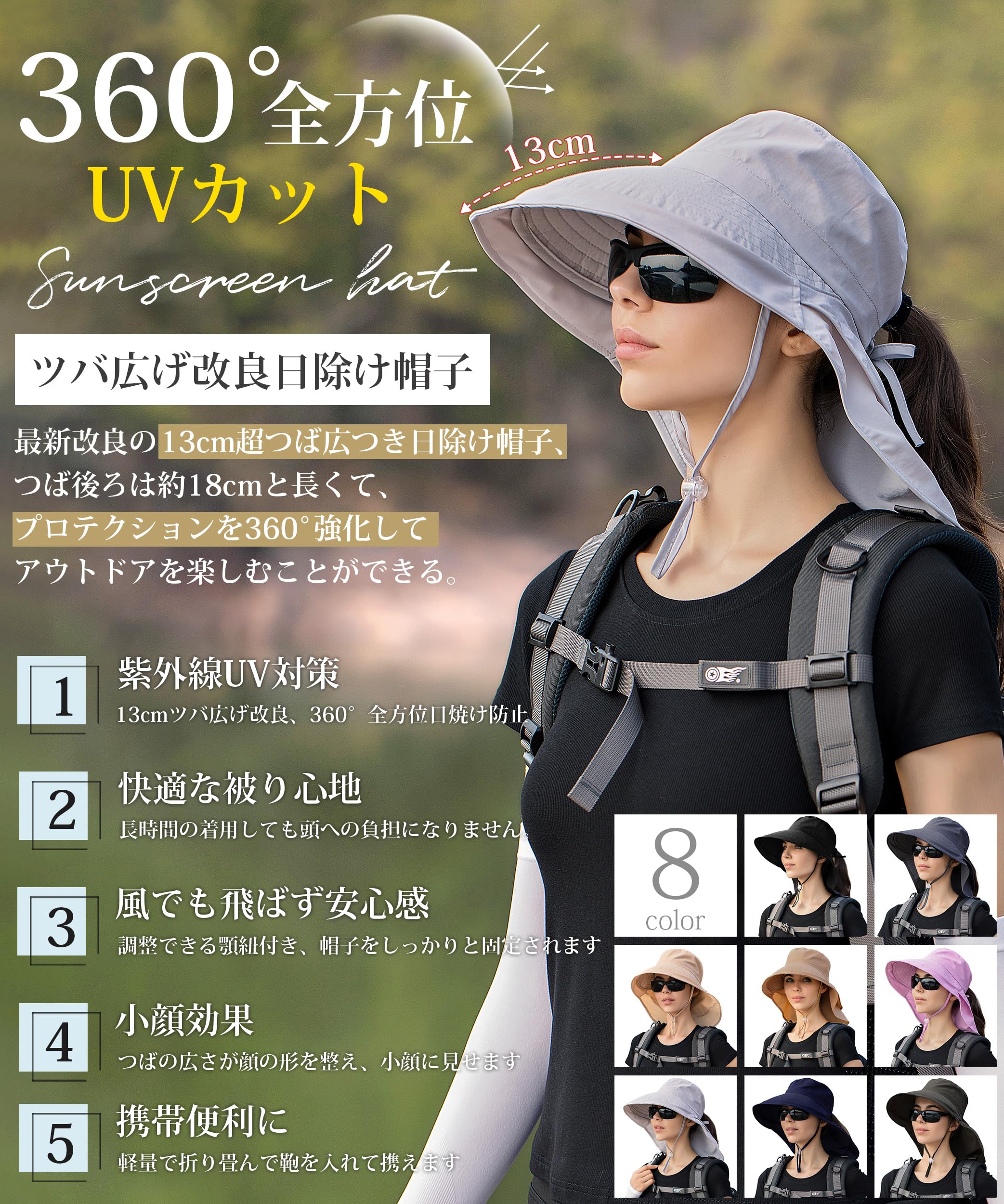 [PALAME] UVカット 帽子 レディース 【360度全面UVカット・ツバ広げ改良・首筋しっかり守る】 春夏 日除け帽子 紫外線対策 日焼け防止 遮光遮熱 吸汗速乾 あご紐 風飛ばない 通気性 軽量 小顔 通勤 登山 海辺 農作業 アウトドア サンハット