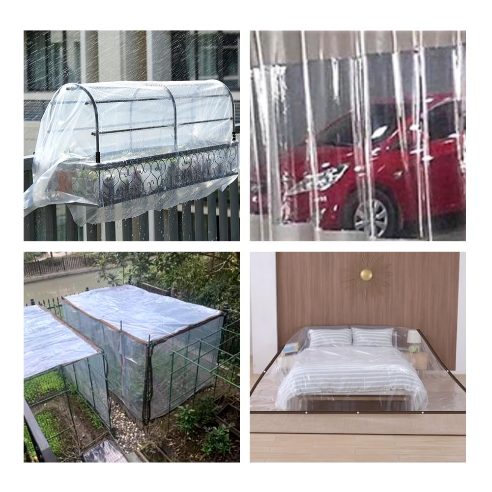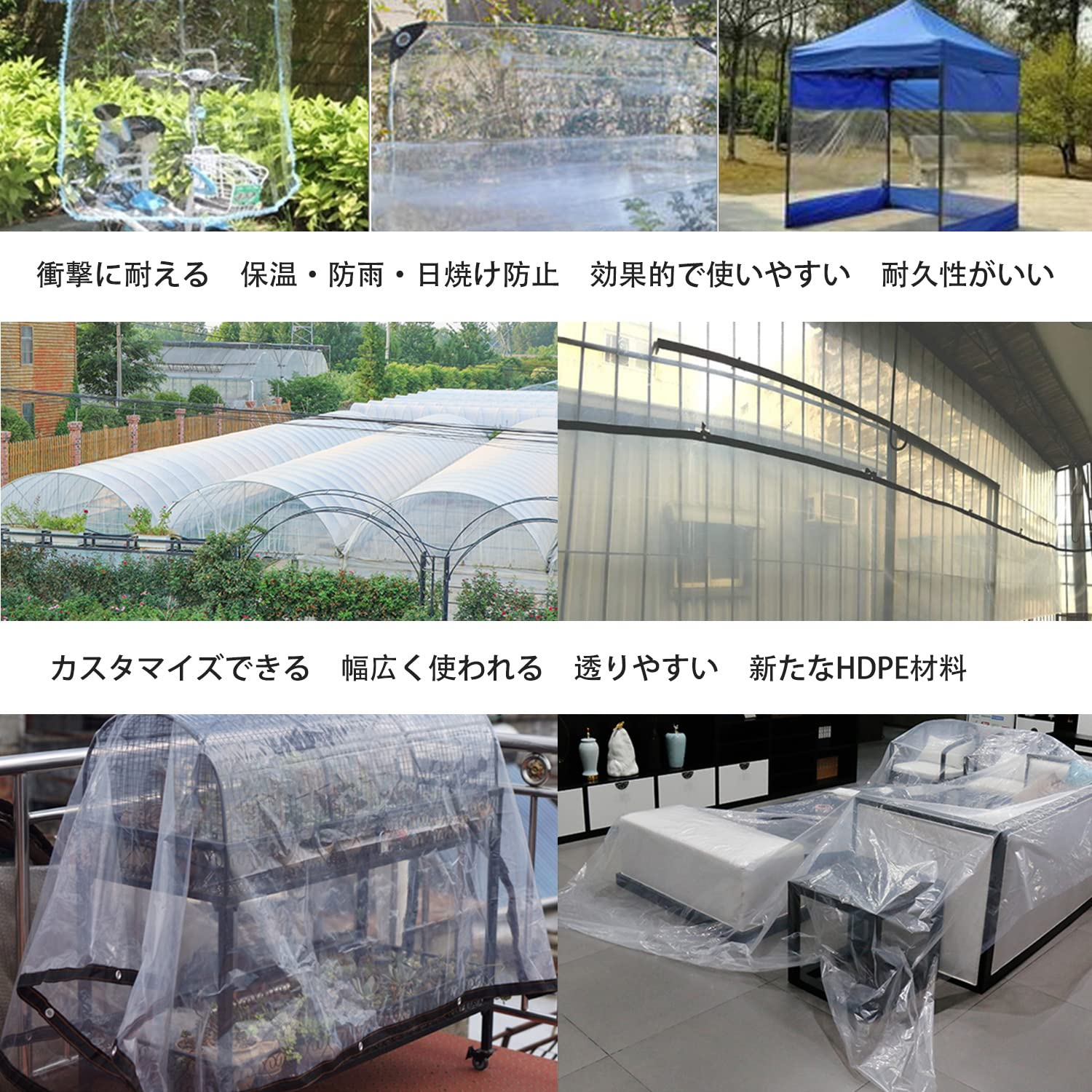 【透明シート 屋外-耐久性】:透明シートンは厚さ0.1mmの丈夫なPE製で、柔らかくて丈夫、90%透明、耐紫外線性と耐久性があります。 室内を暖かく保つことができ、冬に植物を保護する温室としても果たします。