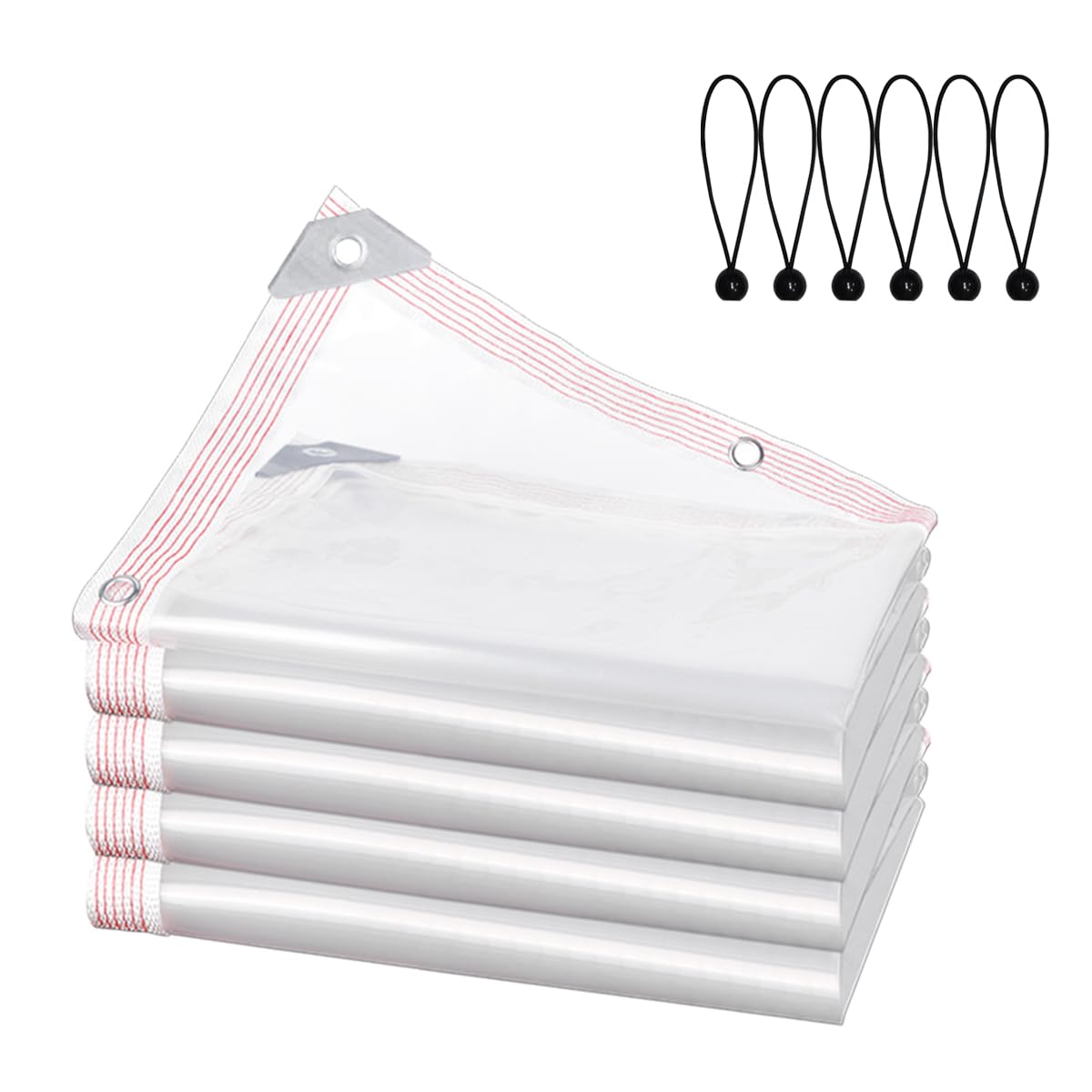 【人気】防水透明シート(2x2m6本弾性縄付き) ベランダ 園芸 雨よけ 植物 屋外 透明 防水 ビニールシート
