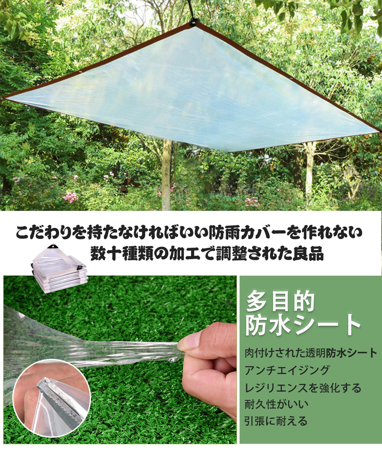 防水透明シート(2x2m6本弾性縄付き) ベランダ 園芸 雨よけ 植物 屋外 透明 防水 ビニールシート