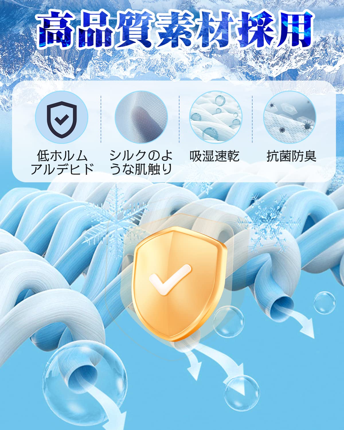 【優れた通気性&抗菌性】表生地が二重構造の極涼生地を採用されている掛け布団は、絹のように滑らかでひんやりとした肌触りを実現!中わたに吸放湿性が高い特殊ポリエステルを取り入れ、こもりがちな湿気を外に逃し、熱を拡散してくれます。また、抗菌加工でニオイや細菌の増殖を抑える抜群的な効果があるのも嬉しいポイントです。衛生的で清潔感を保ち、サラッと快適な寝心地を味わえます。
