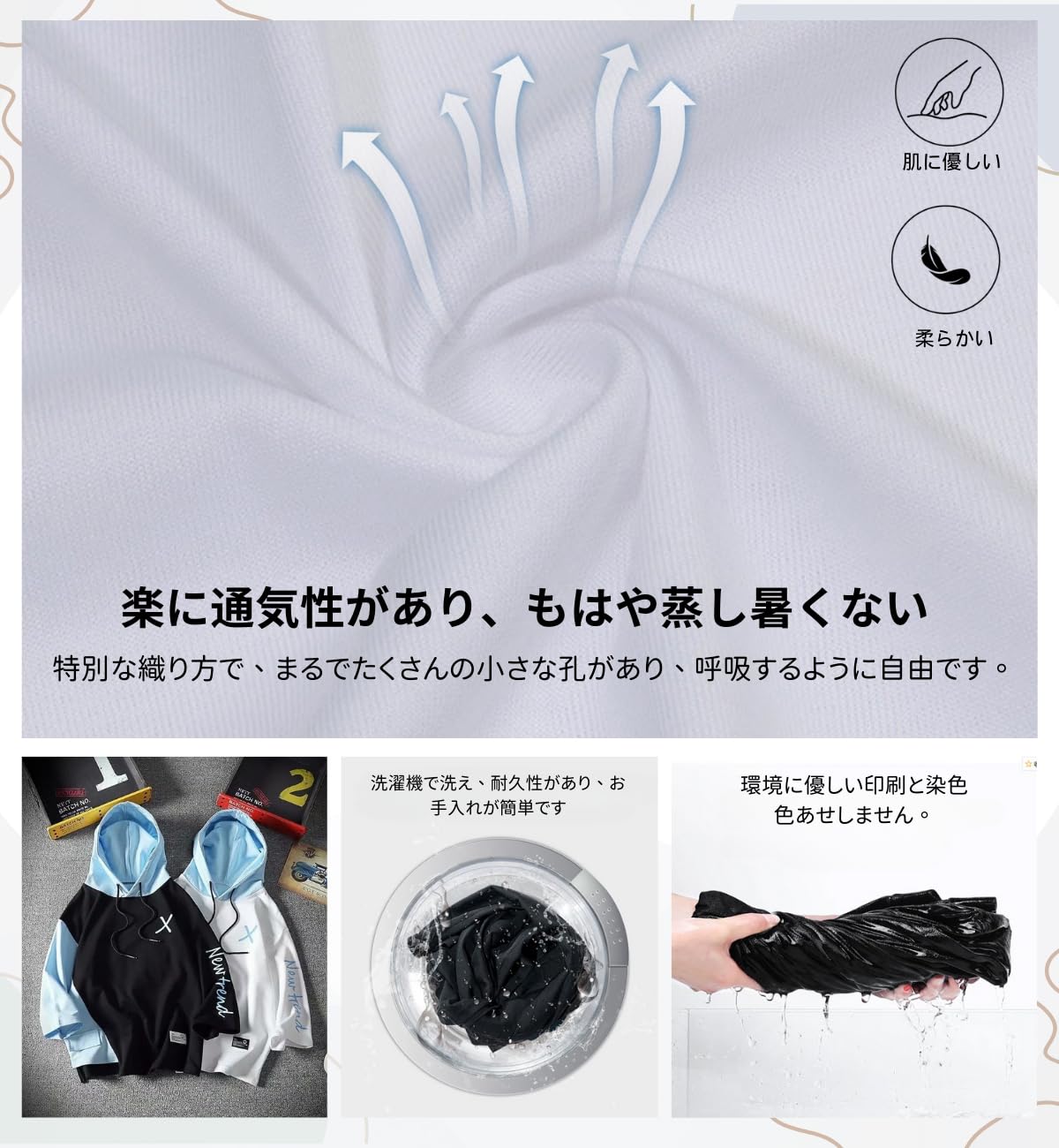 [foveitaa] Tシャツ メンズ 夏服 ゆったり 七分袖 パーカー 半袖 夏 Tシャツ 洋服 おしゃれ 大きいサイズ フード付き ゆったり カジュアル プルオーバー シャツ