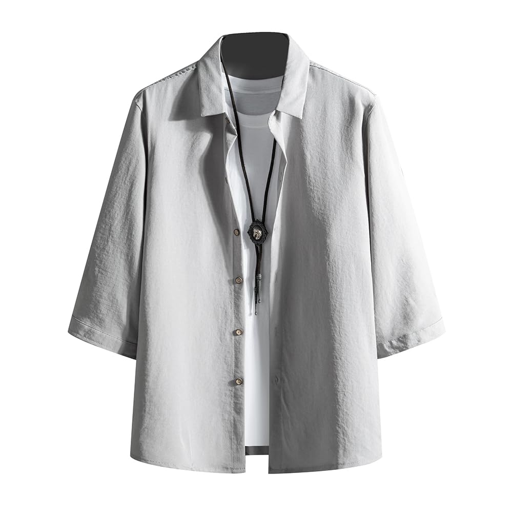 【新着】[FUZHIHUA] シャツ メンズ 七分袖 夏服 半袖 おしゃれ カジュアル ゆったり 無地 大きいサイズ カジュアルシャツ お洒落 トップス 軽い 通気 柔らかい 人気 服