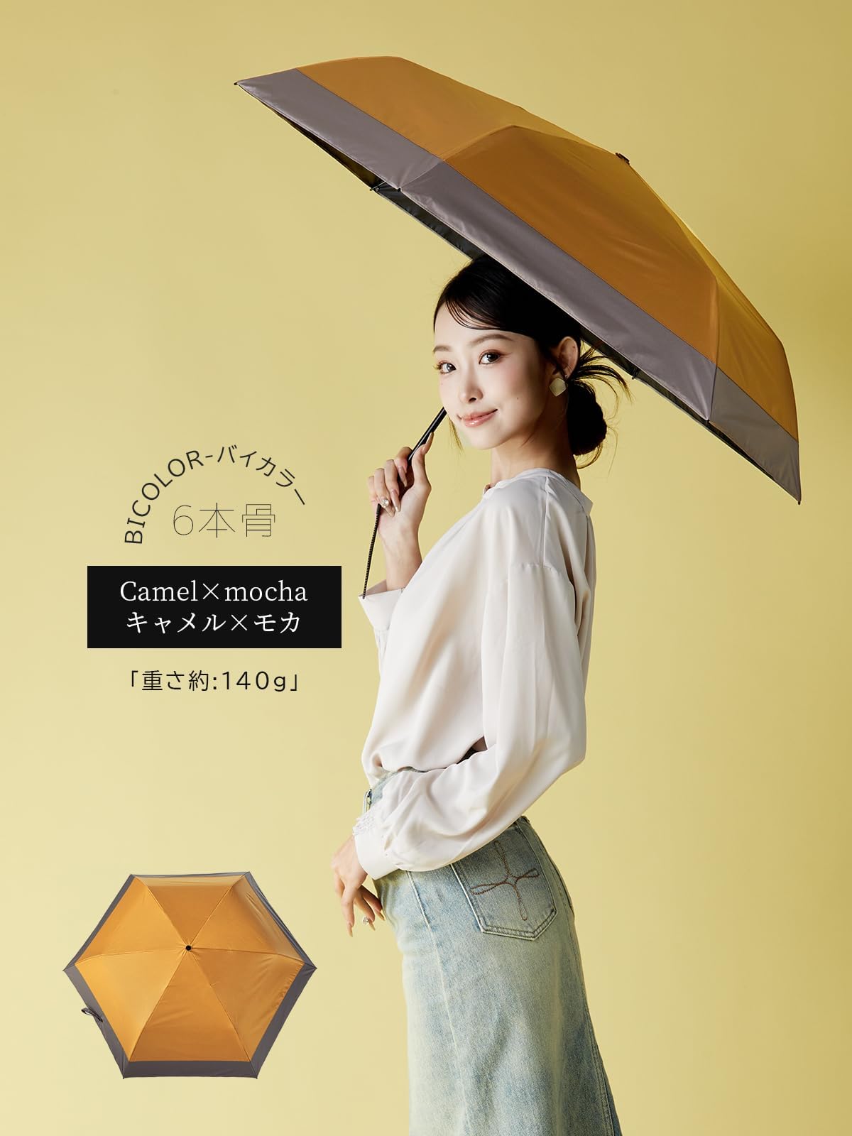 【進化した6本骨登場!耐風UP・より広く守る】LDKベストバイ受賞商品がさらに進化!従来の5本骨から6本骨にアップグレードし、丈夫さと耐風性が大幅に向上。軽量さを保ちながら、直径は従来の80cmから88cmに拡大され、より広範囲をカバーします。大きさと軽さを両立し、持ち運びもラクラク。暑い日や急な雨でも安心して使える頼れる夏の必需品です!今年は新色の優雅なモカ系と爽やかな自然の色が登場。落ち着きと華やかさを兼ね備え、大人の魅力を引き立て、日常に彩りを加えます。
