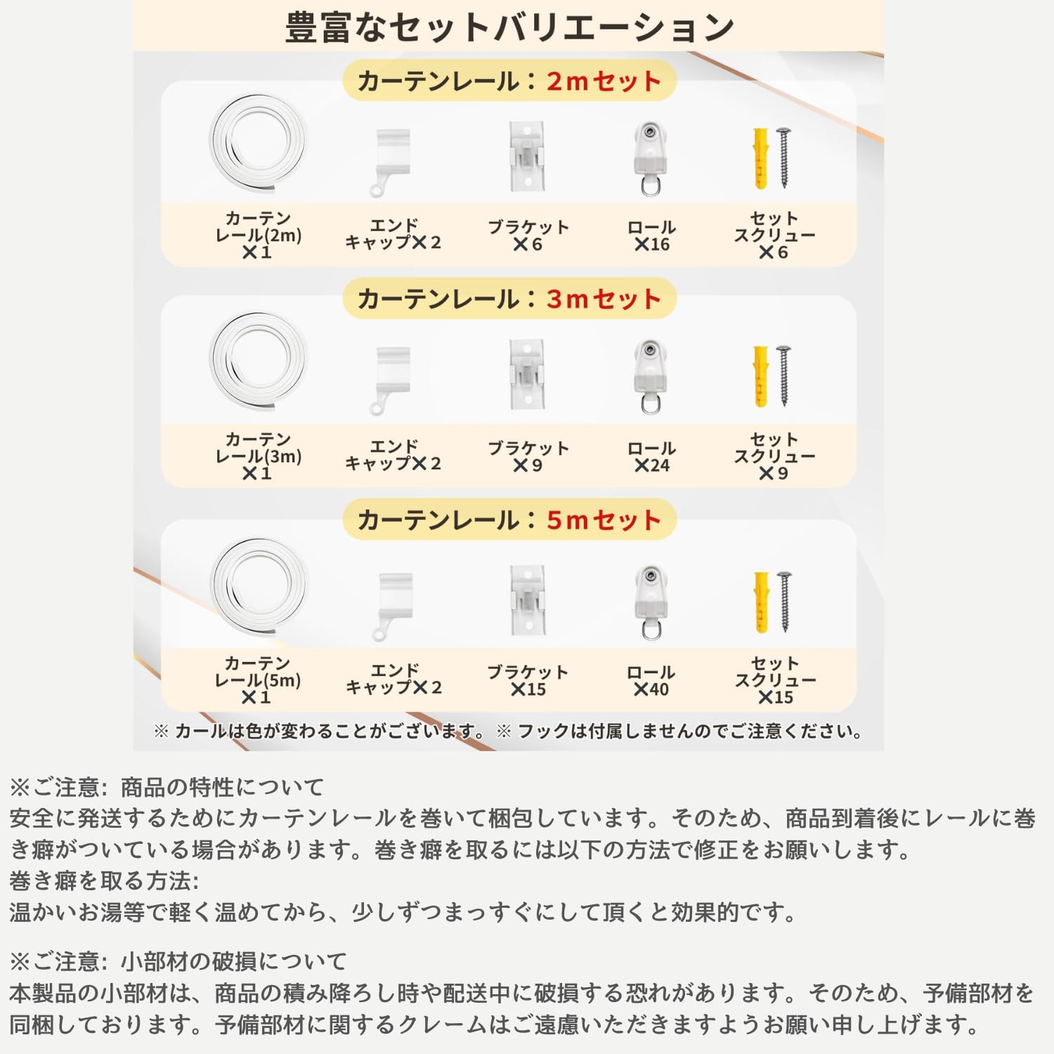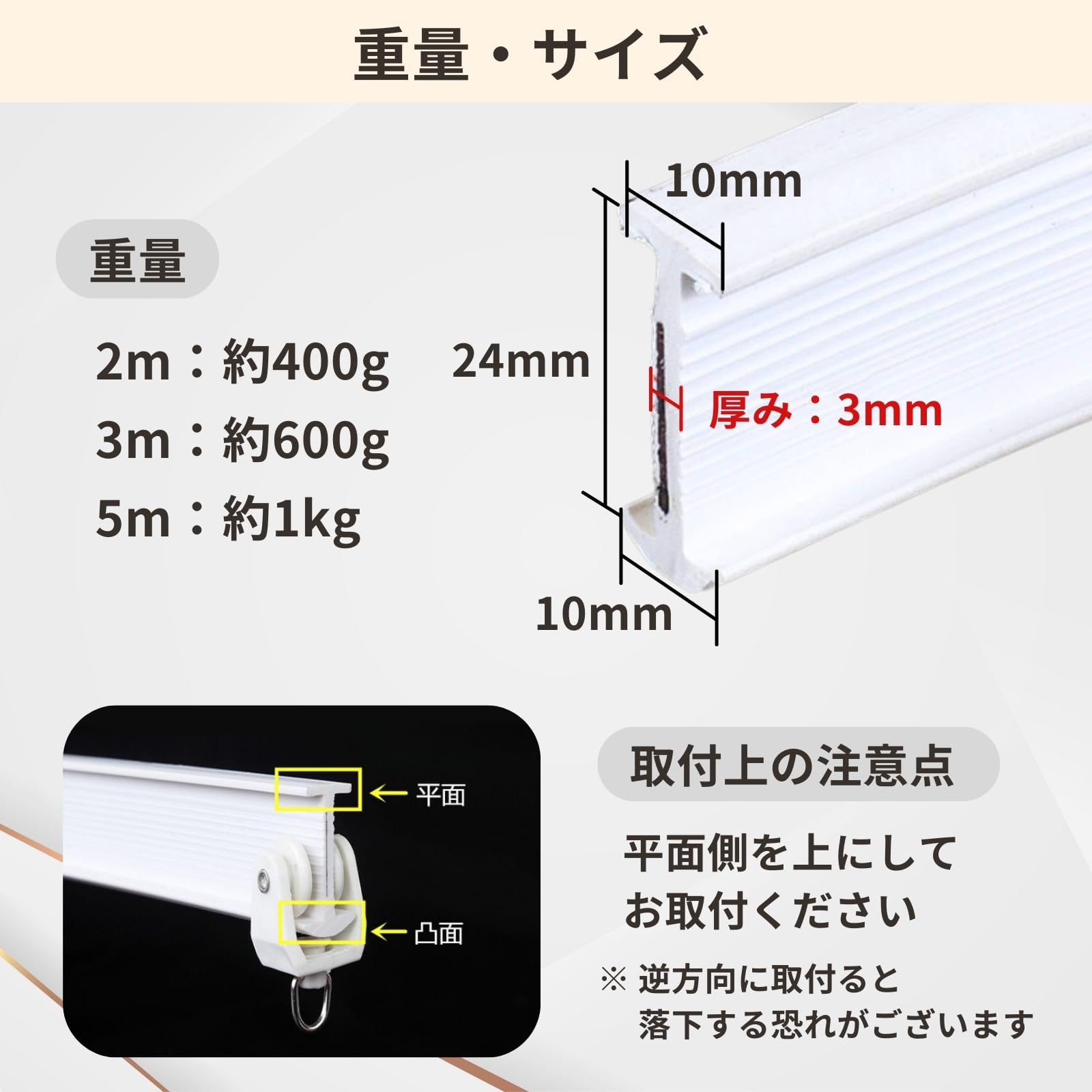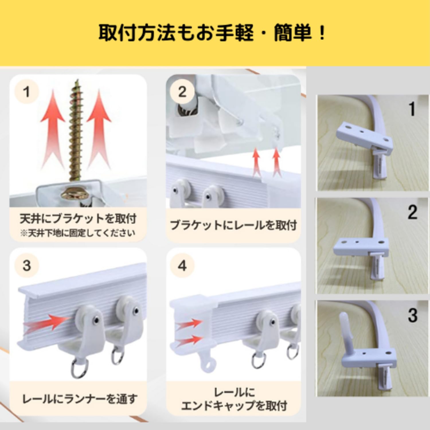【サイズ】2m、3m、5mですが、必要な長さに調整できます。天井に取り付けられるので、カーテンを取り付けてお部屋を仕切るのにも使えます!