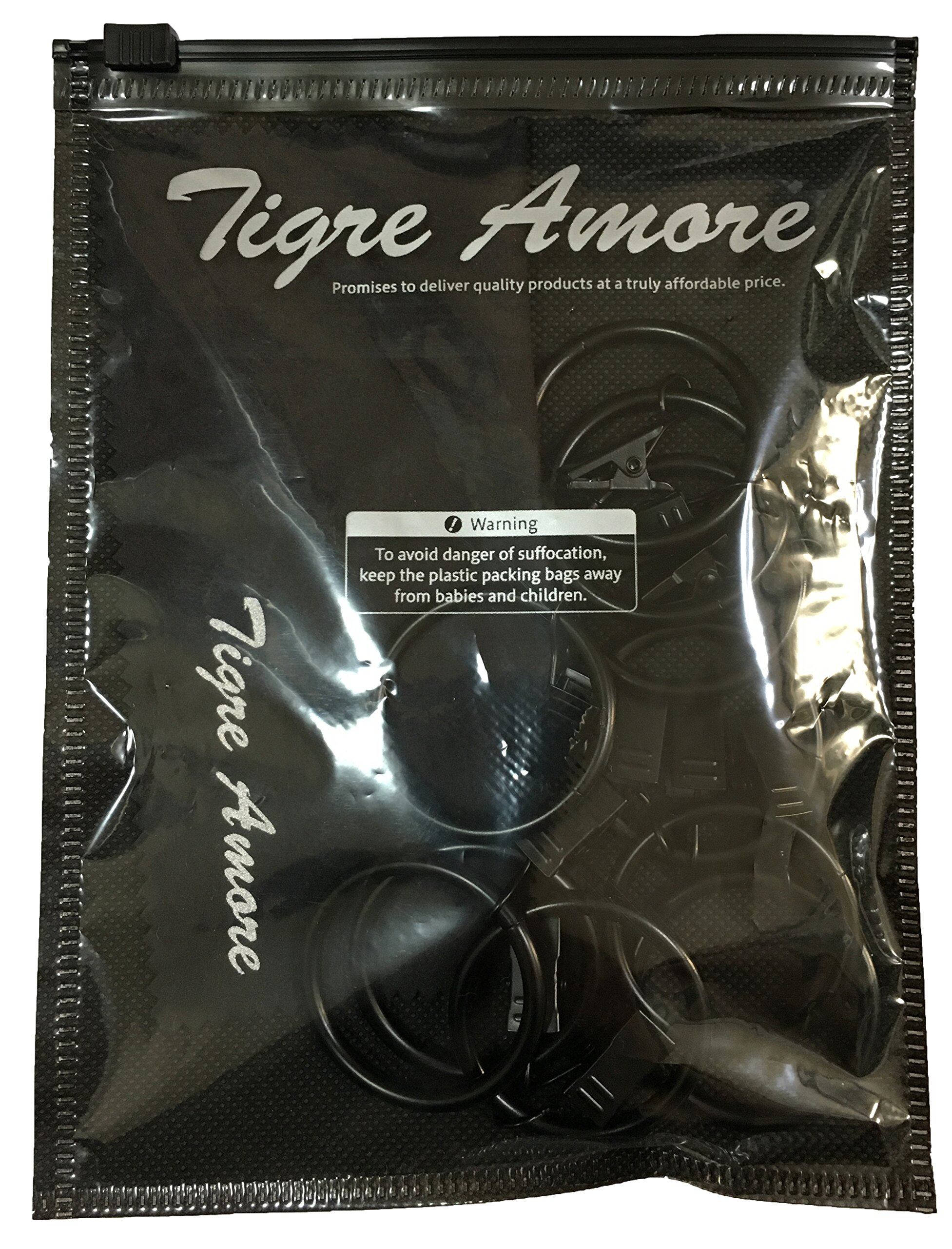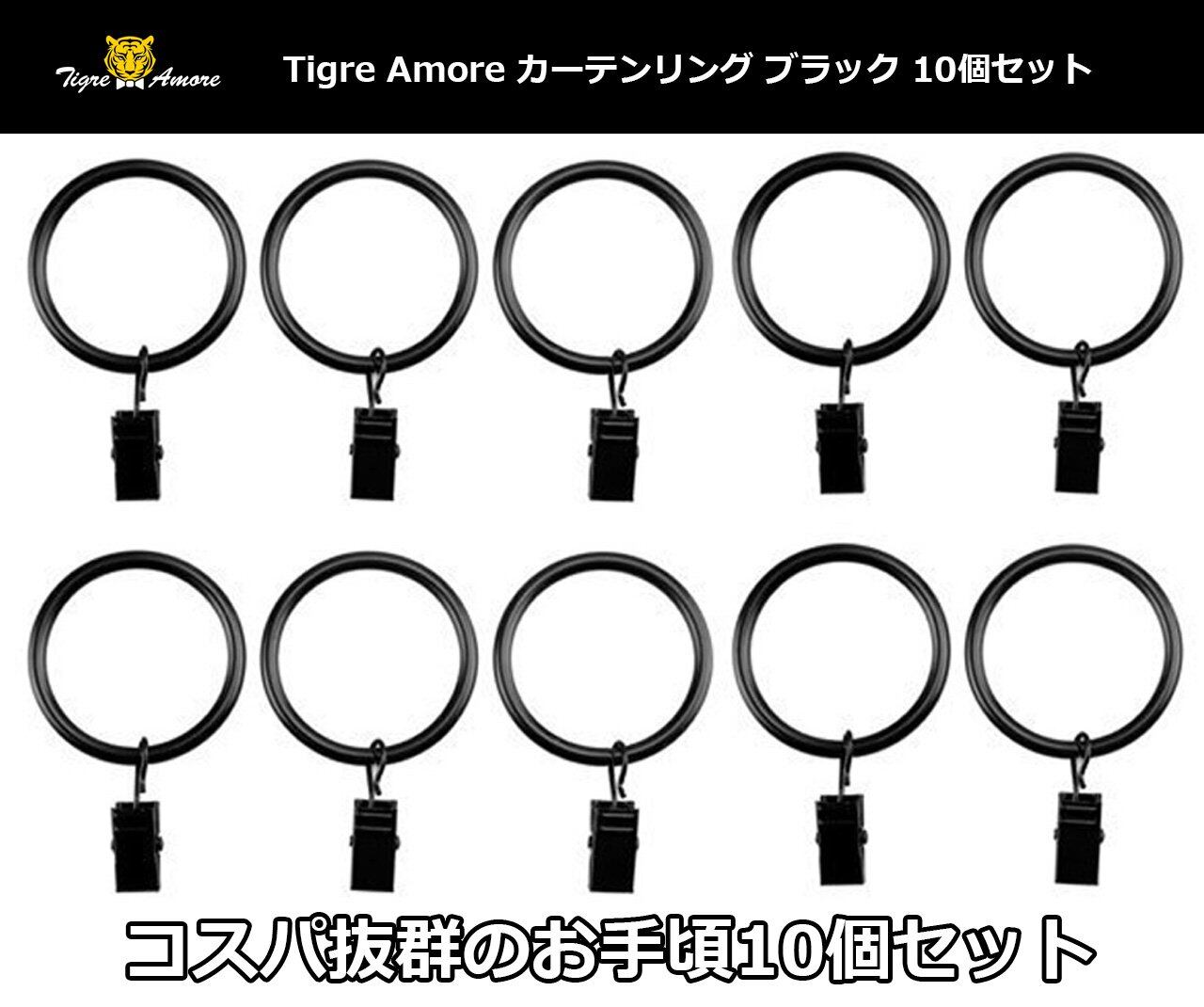 Tigre Amore スライドリング カーテンクリップ カーテン リングライナー (10個セット/ブラック)
