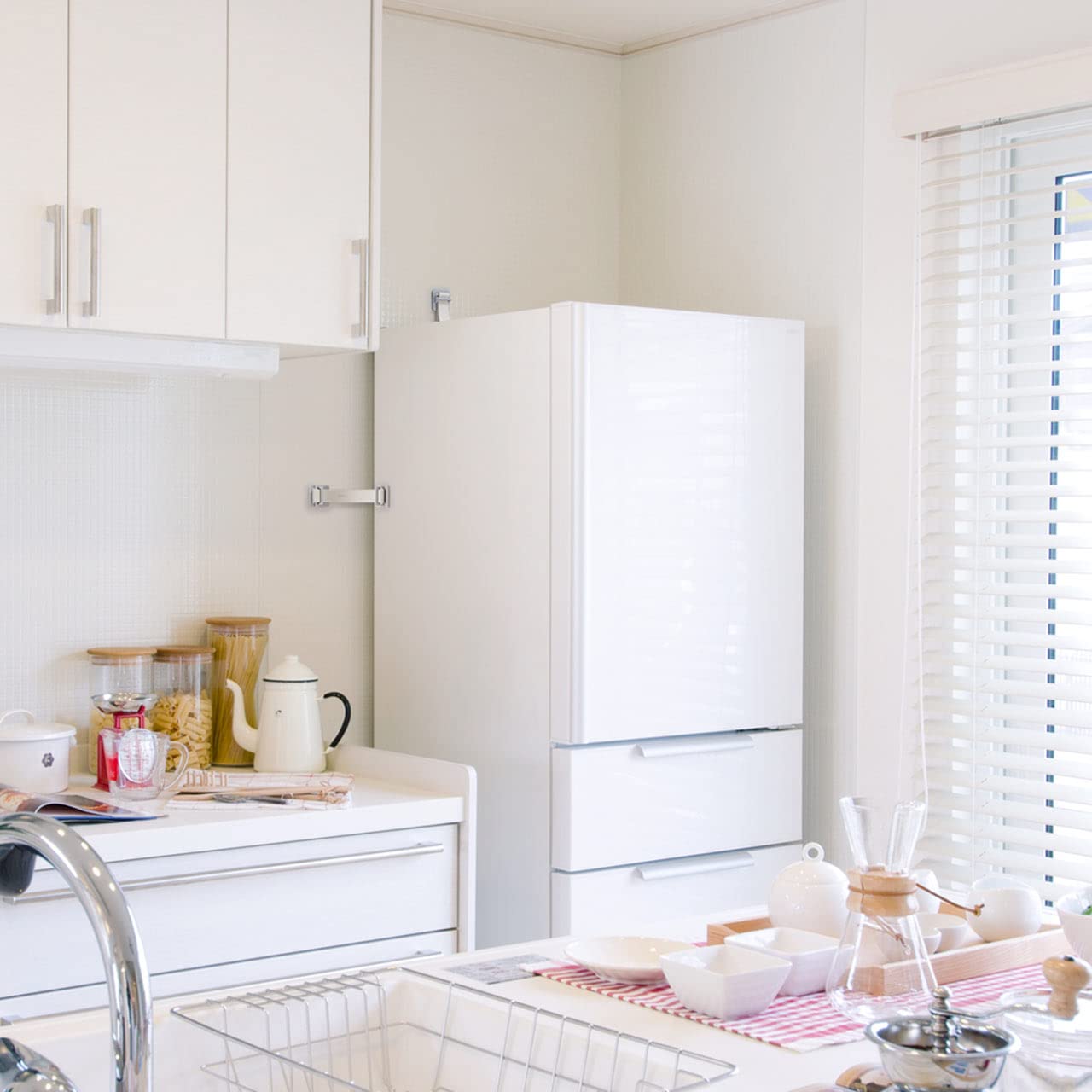 接着テープで固定するので、壁に穴をあけずに冷蔵庫を固定する事ができます。