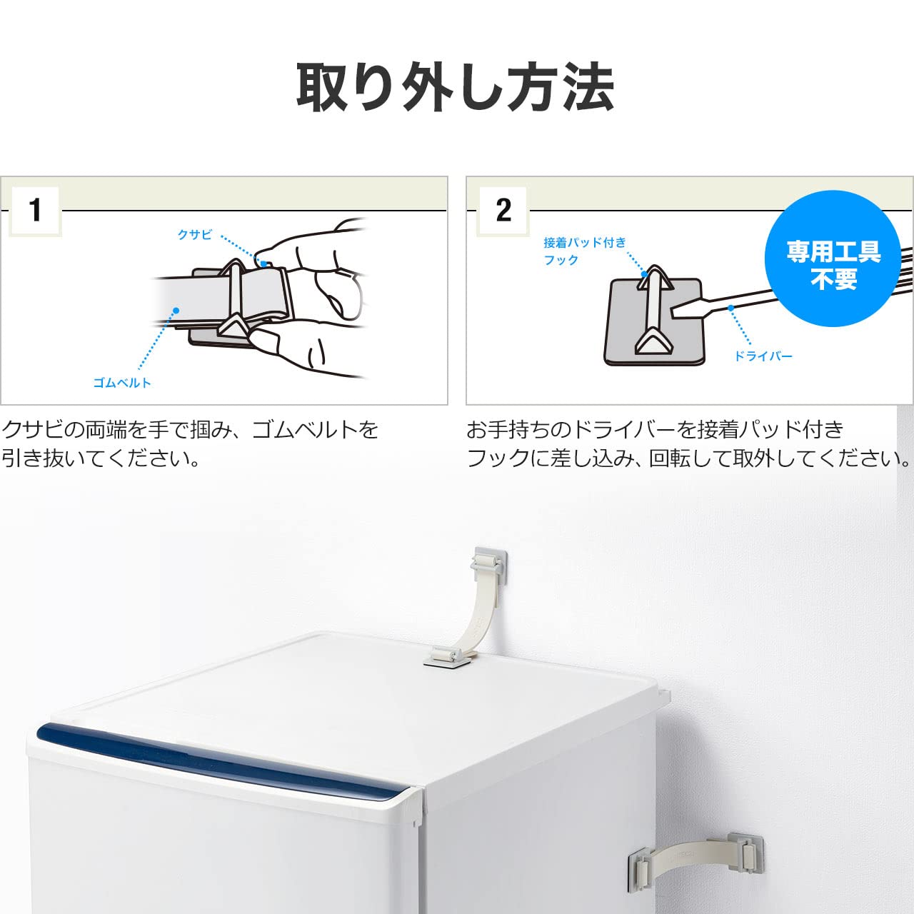 冷蔵庫専用の地震対策固定ベルトです。