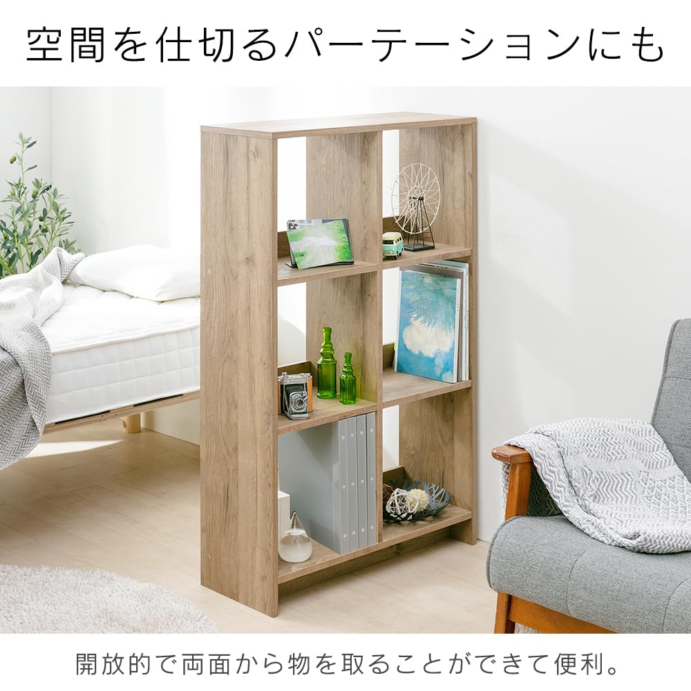 【数量限】アイリスオーヤマ 本棚 棚 ラック 収納棚 ウッドオープンシェルフ2×3 幅約69×奥行約26.5×高さ約109.4 ナチュラル おしゃれ 部屋に馴染む WOS-6 ウォームホワイト【HIROBIROシリーズ】