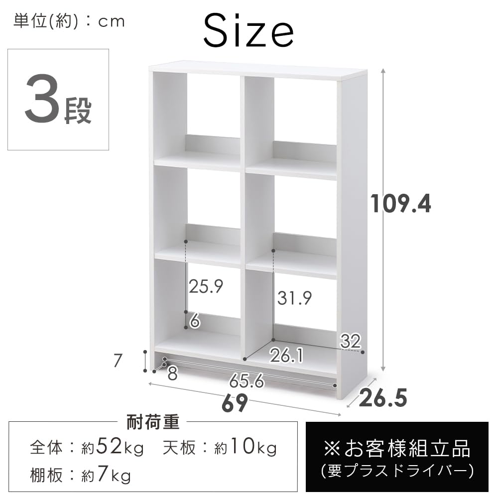 耐荷重/天板:10kg、固定棚板(1枚あたり):7kg
