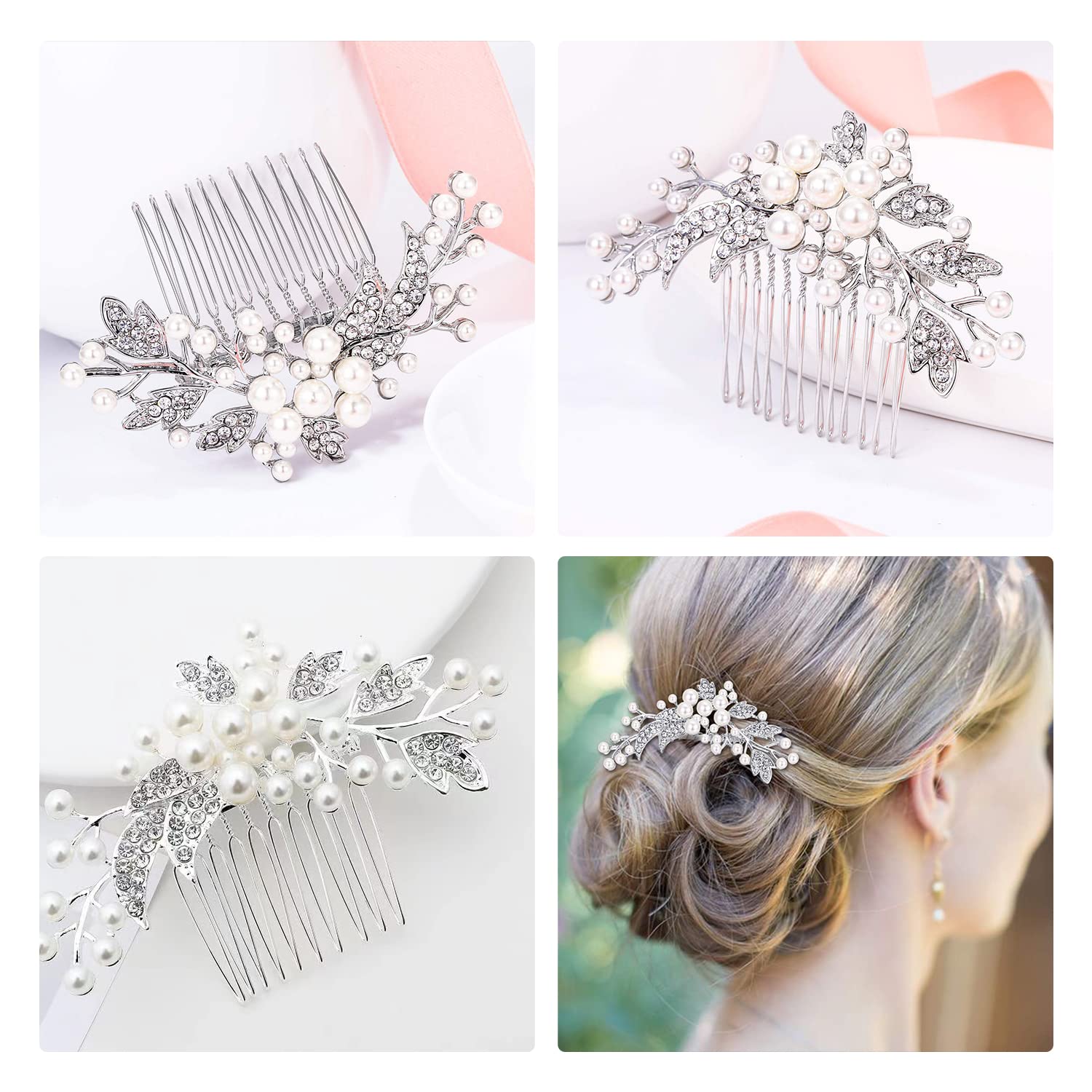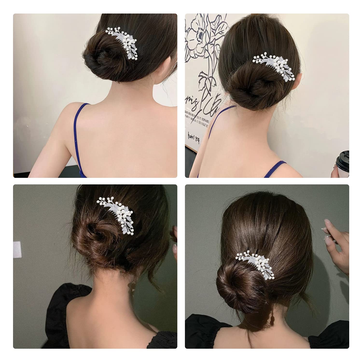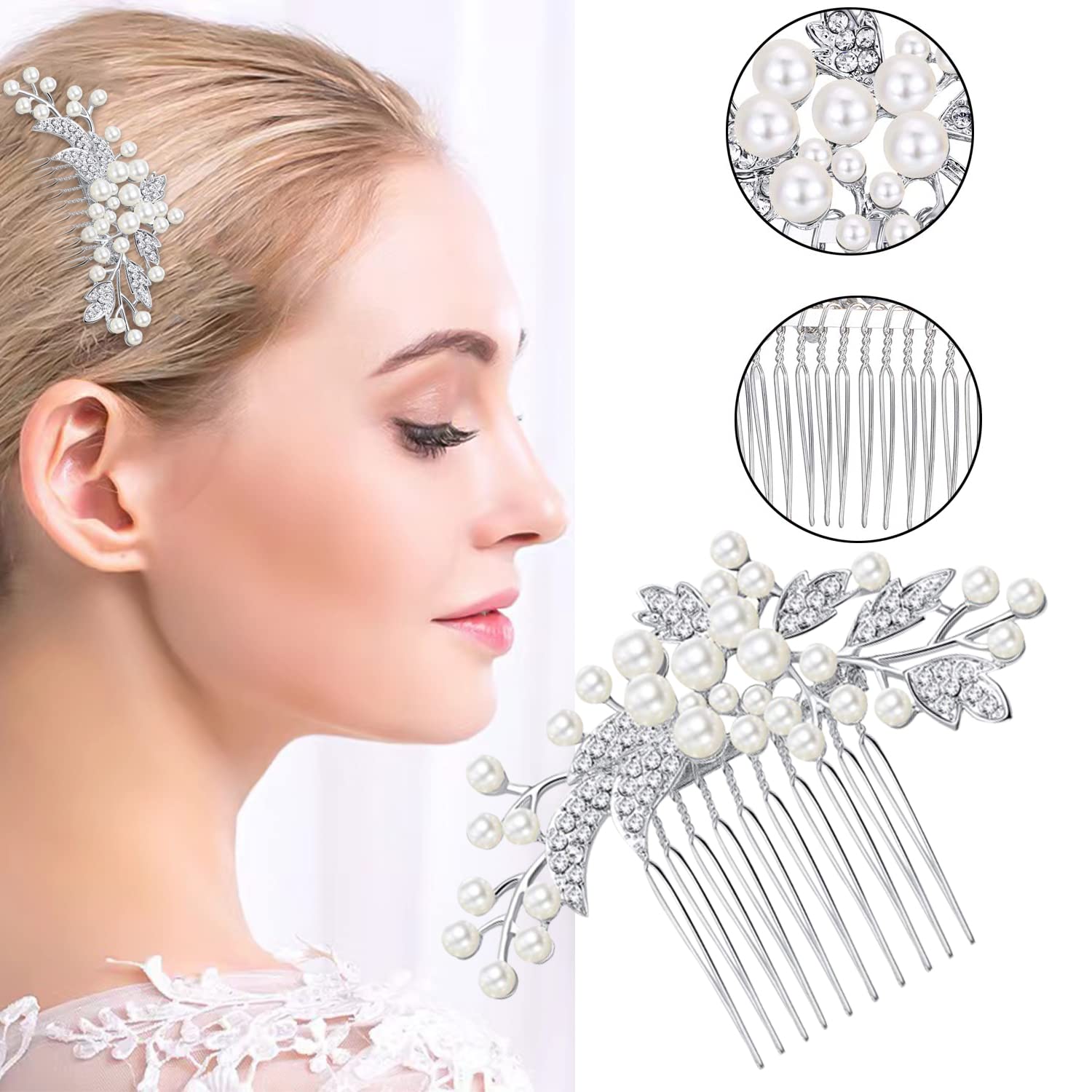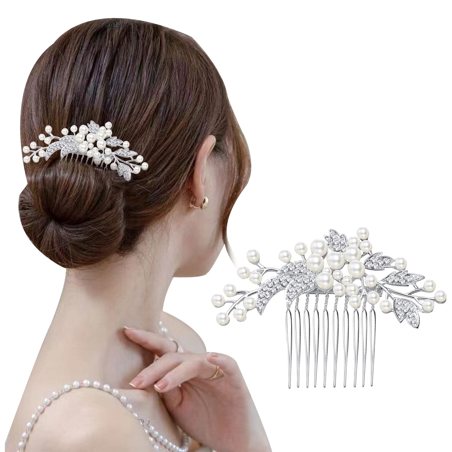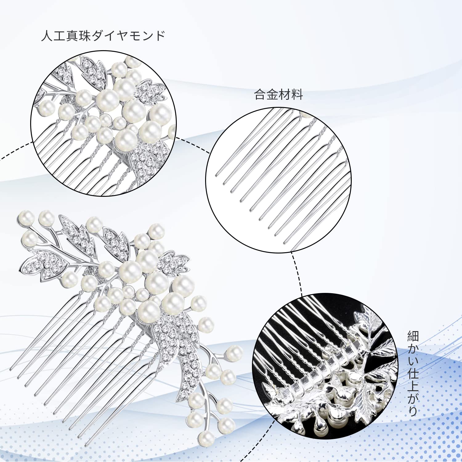 Doyime パール ヘアー コーム 髪飾り かんざし 結婚式 着物 成人式 発表会 入学式 卒業式 ウェディング 披露宴 和装 洋装 まとめ髪 着物 振袖 留袖 シルバー