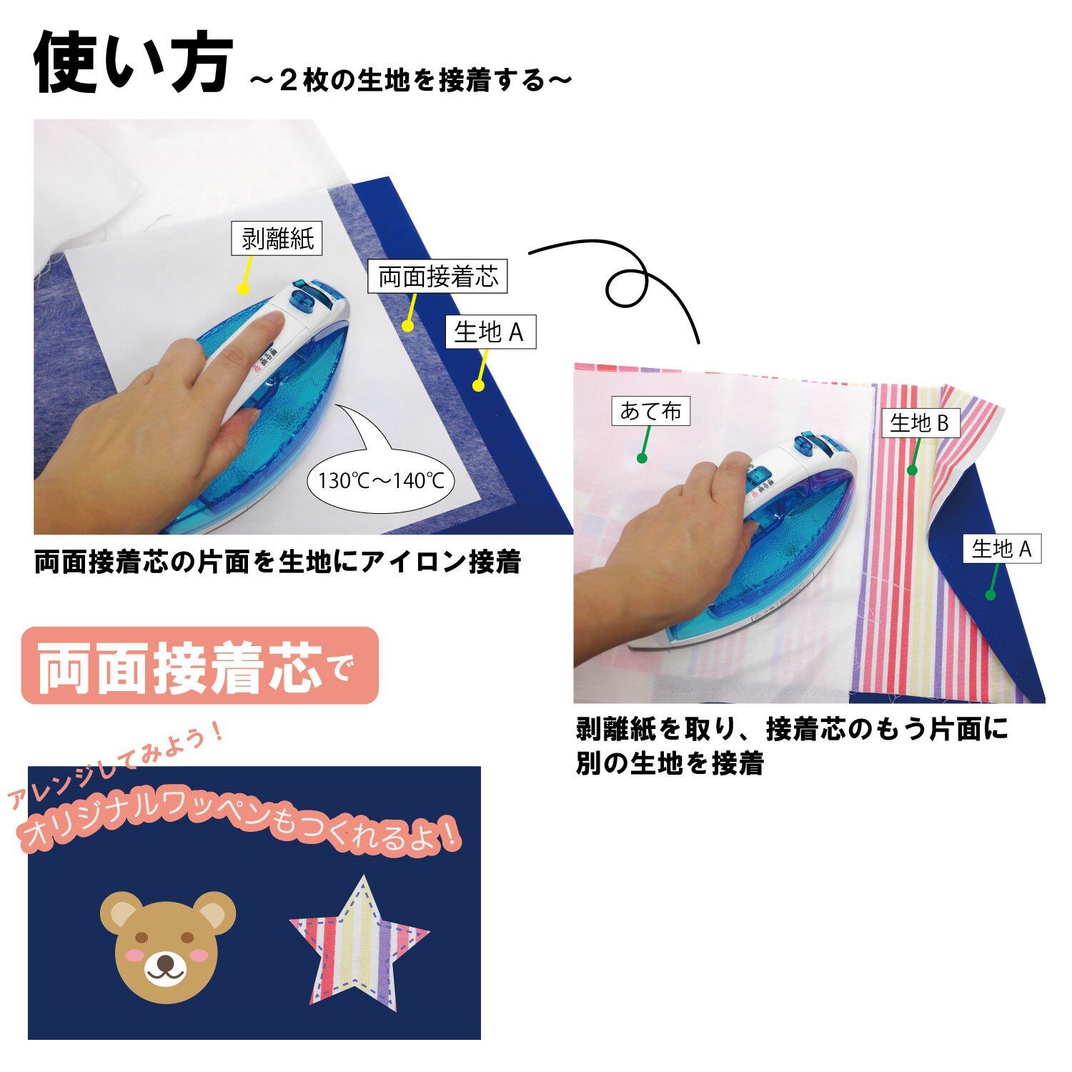 表生地と裏生地のはり合わせや、アップリケの取り付けにとても便利な両面接着芯です。