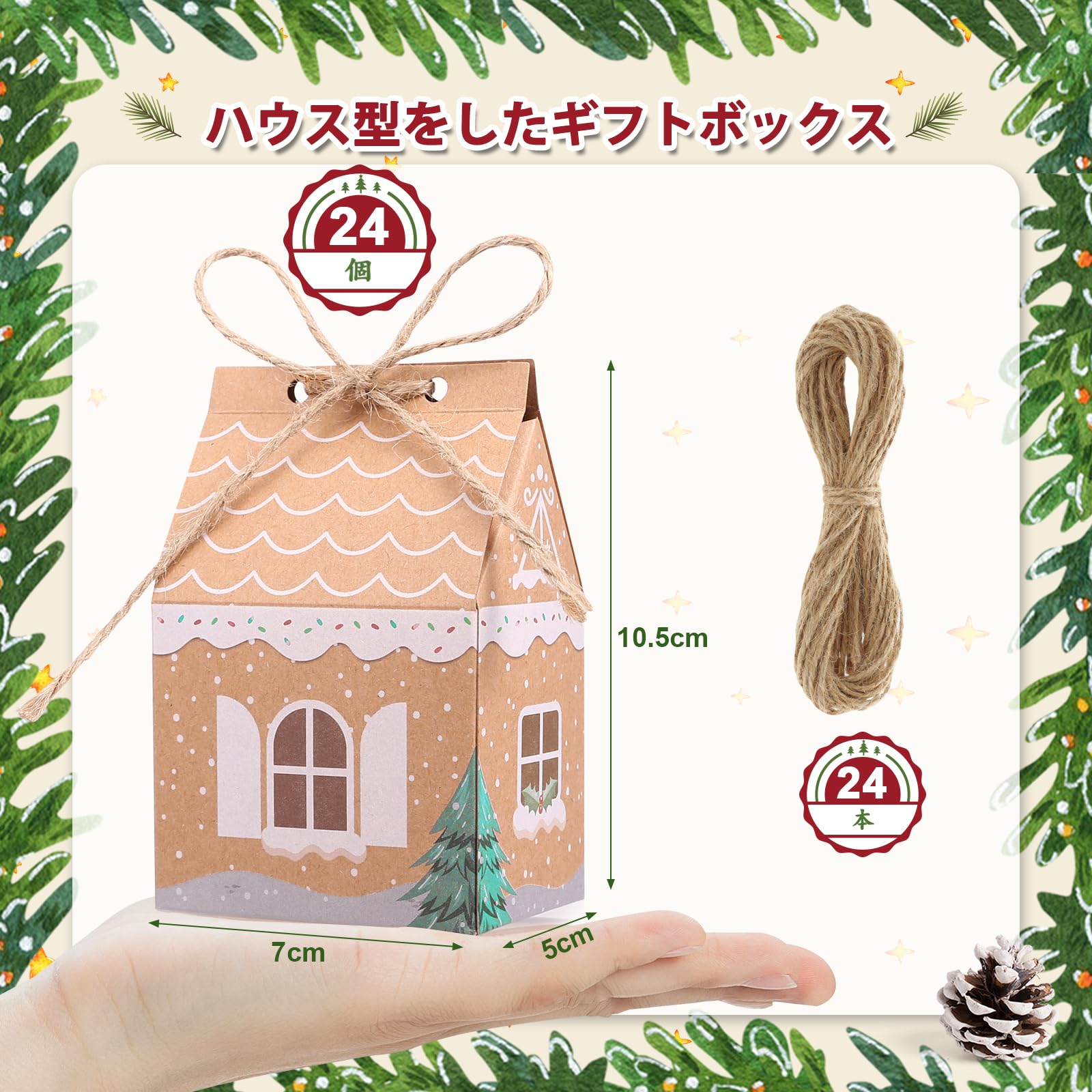 【 セット内容 】24枚ギフトボックス(組み立て型)/サイズ:W7?H10.5?マチ5CM & 24本麻紐
