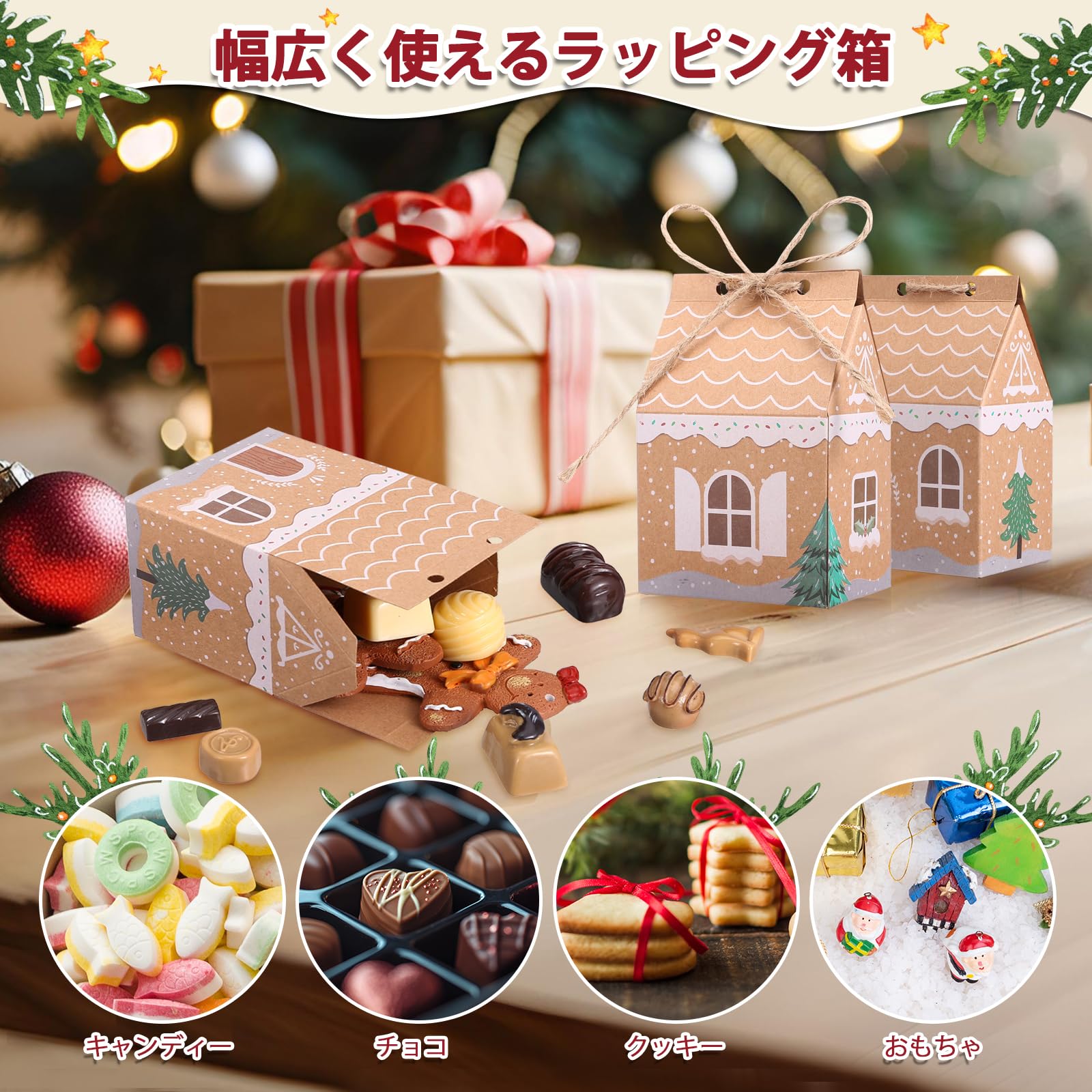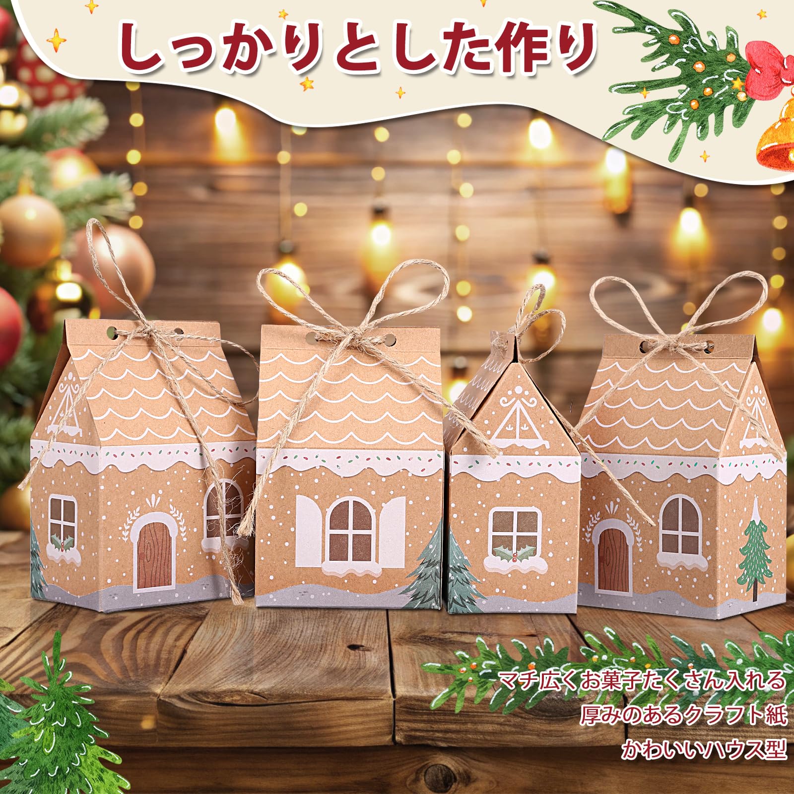 【新着】LEMESO クリスマス 箱 24枚セット アドベントカレンダー 2024 箱 手作り クリスマス ラッピング 袋 紙袋 ギフト 包装 クリスマス袋 クリスマス 飾り オーナメント ギフトバッグ プチギフト ハウス型 丸紐付き