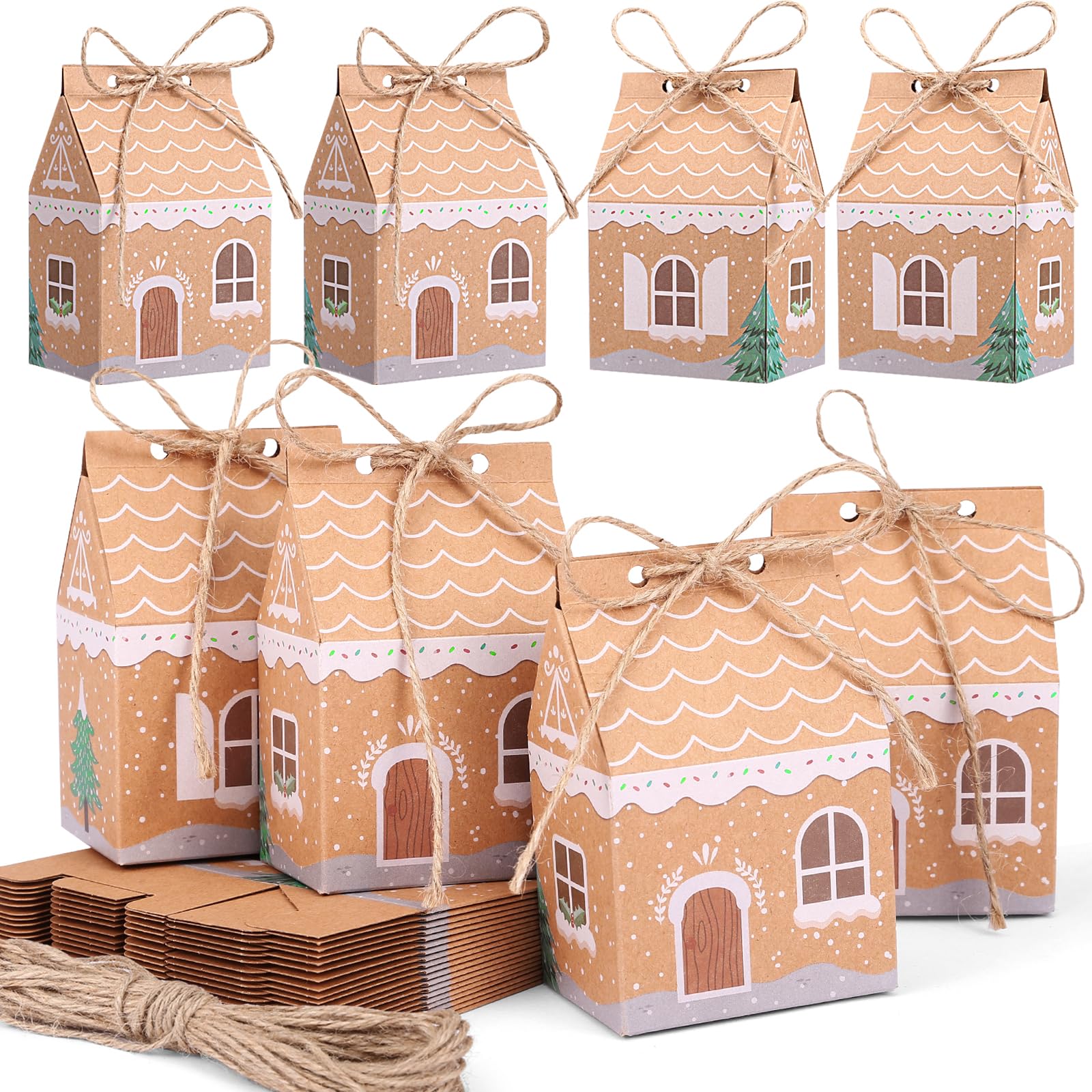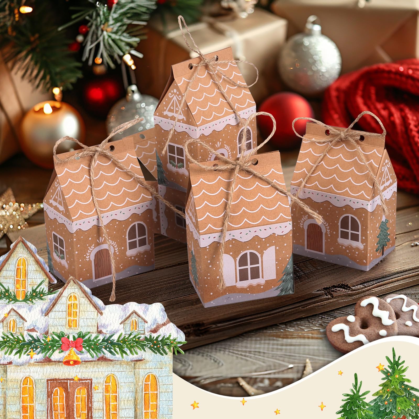 LEMESO クリスマス 箱 24枚セット アドベントカレンダー 2024 箱 手作り クリスマス ラッピング 袋 紙袋 ギフト 包装 クリスマス袋 クリスマス 飾り オーナメント ギフトバッグ プチギフト ハウス型 丸紐付き