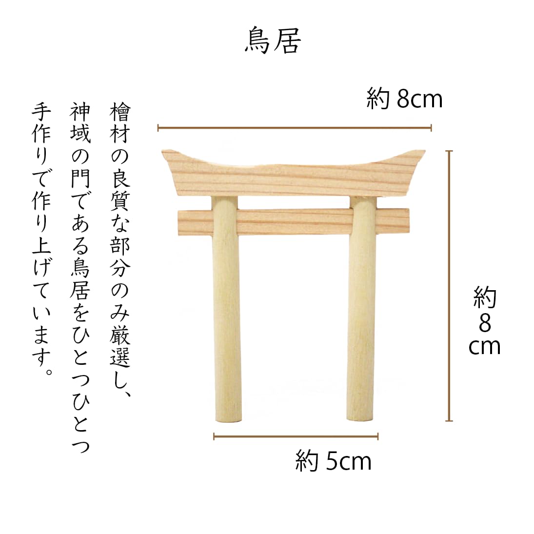 神社などにおいて神様のいる神域と人間が住む俗世を区別するもの(結界)で あり、神域への入口を示すものとされる一種の「門」である鳥居を前面に配置。 台座の部分に穴を開けてあるので鳥居を差し込んで安定して立てることができます。