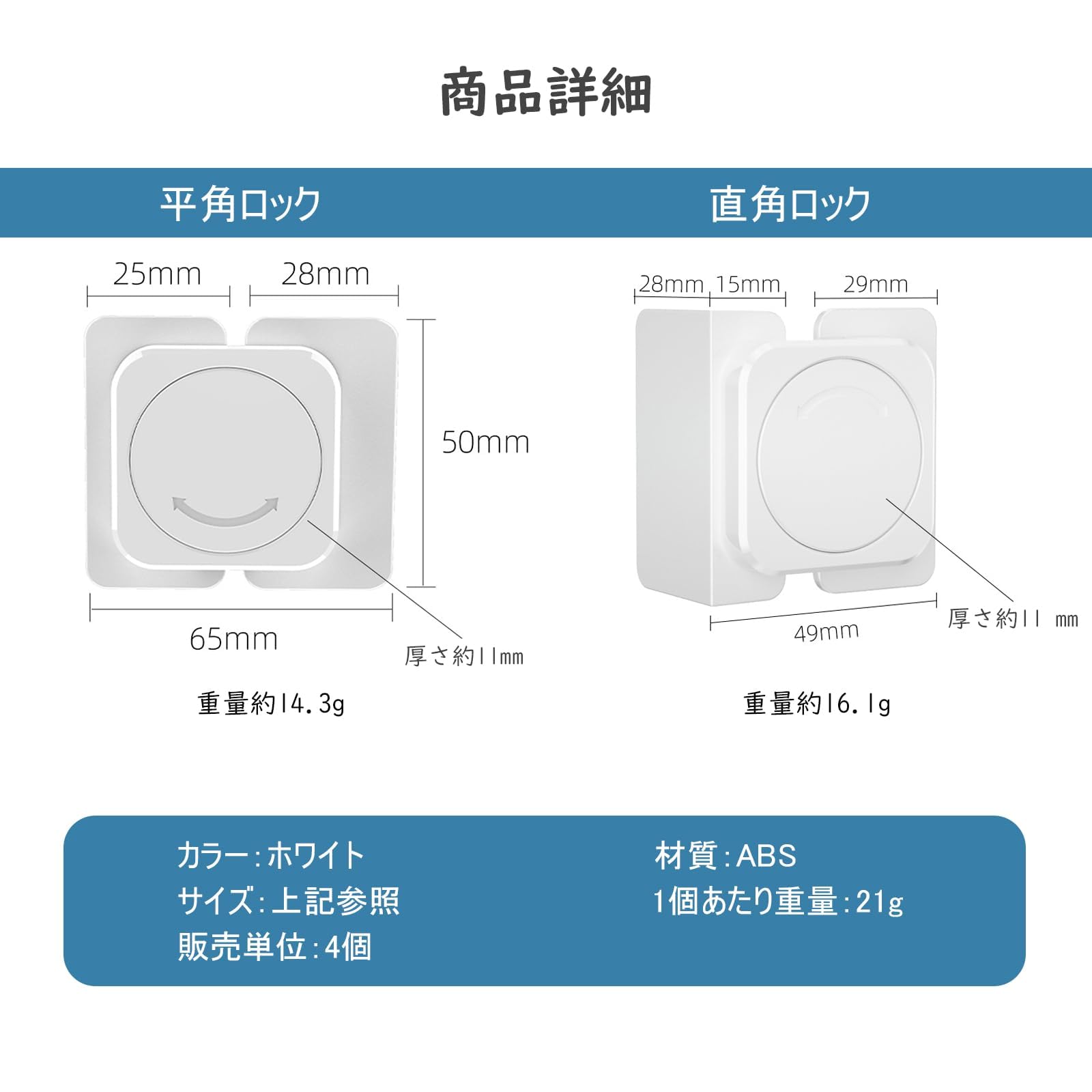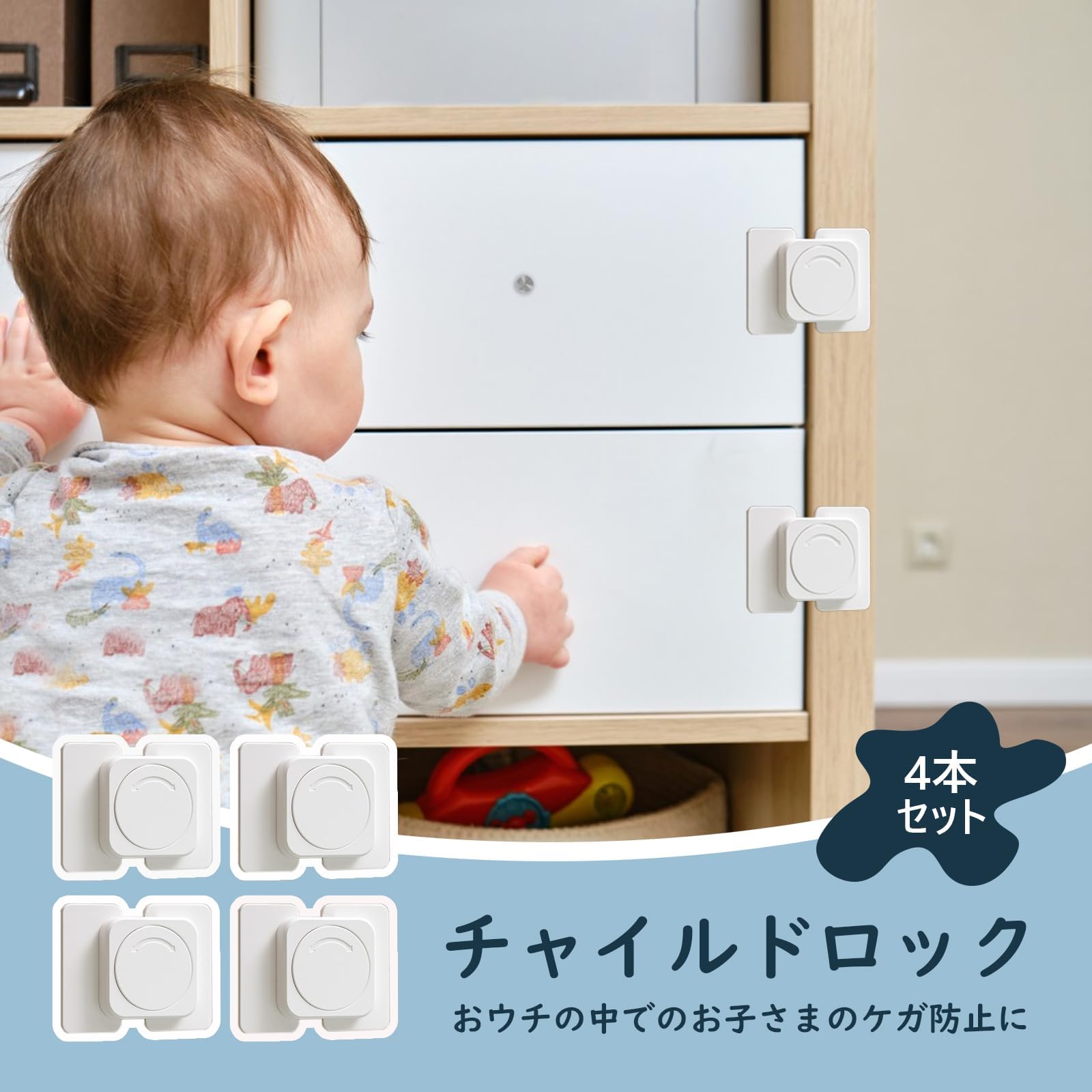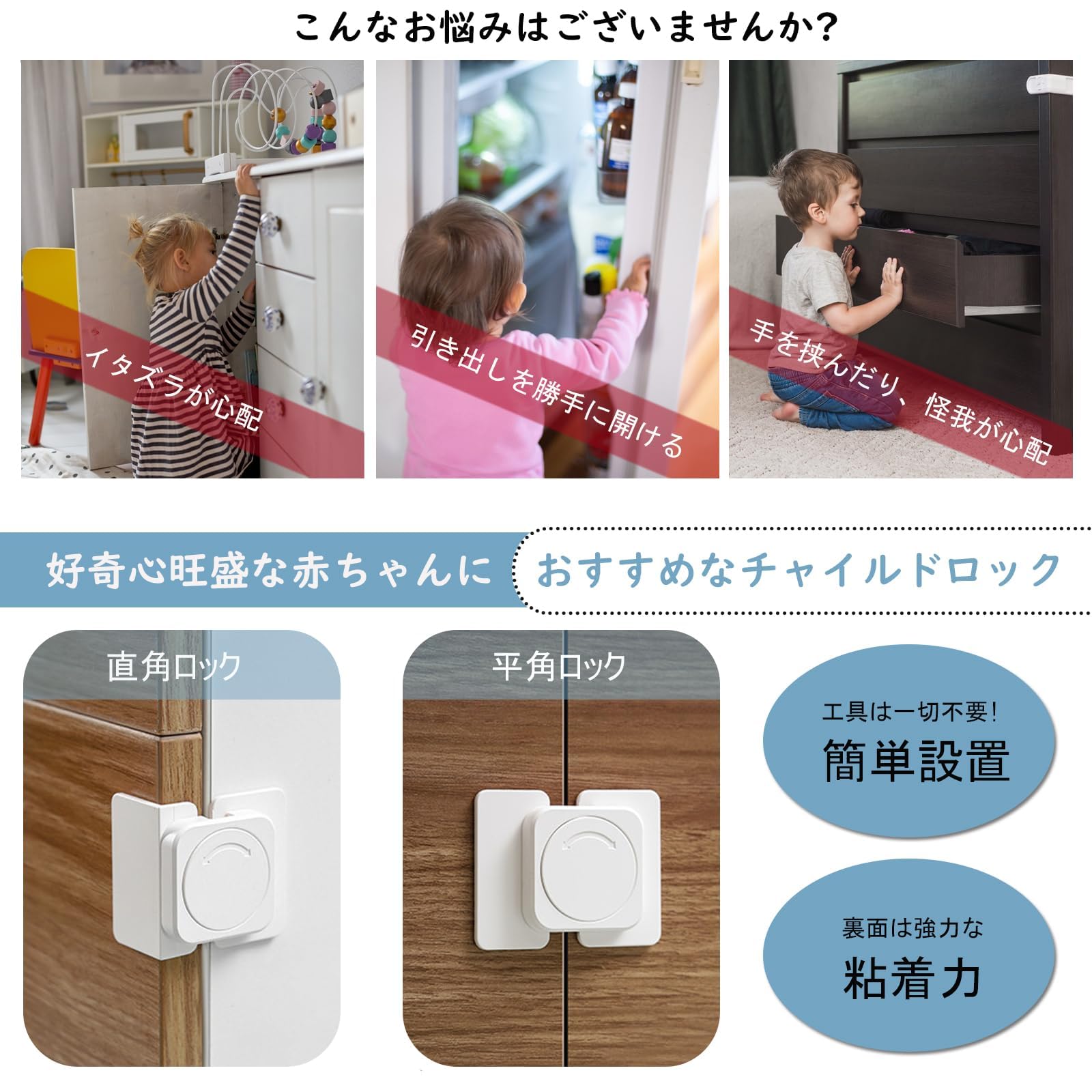 ベビーガード 引き出しロック 4個入り チャイルドロック 赤ちゃん 安全ロック 地震対策 冷蔵庫 戸棚 食器棚 キャビネットなどに適用 家具を傷つけない 簡単取付 (平角ロック)