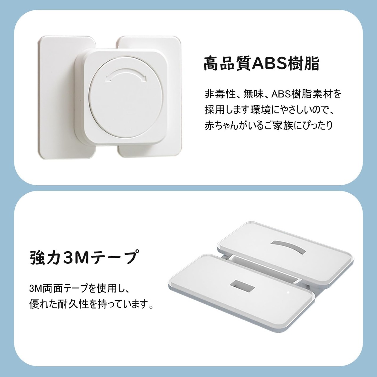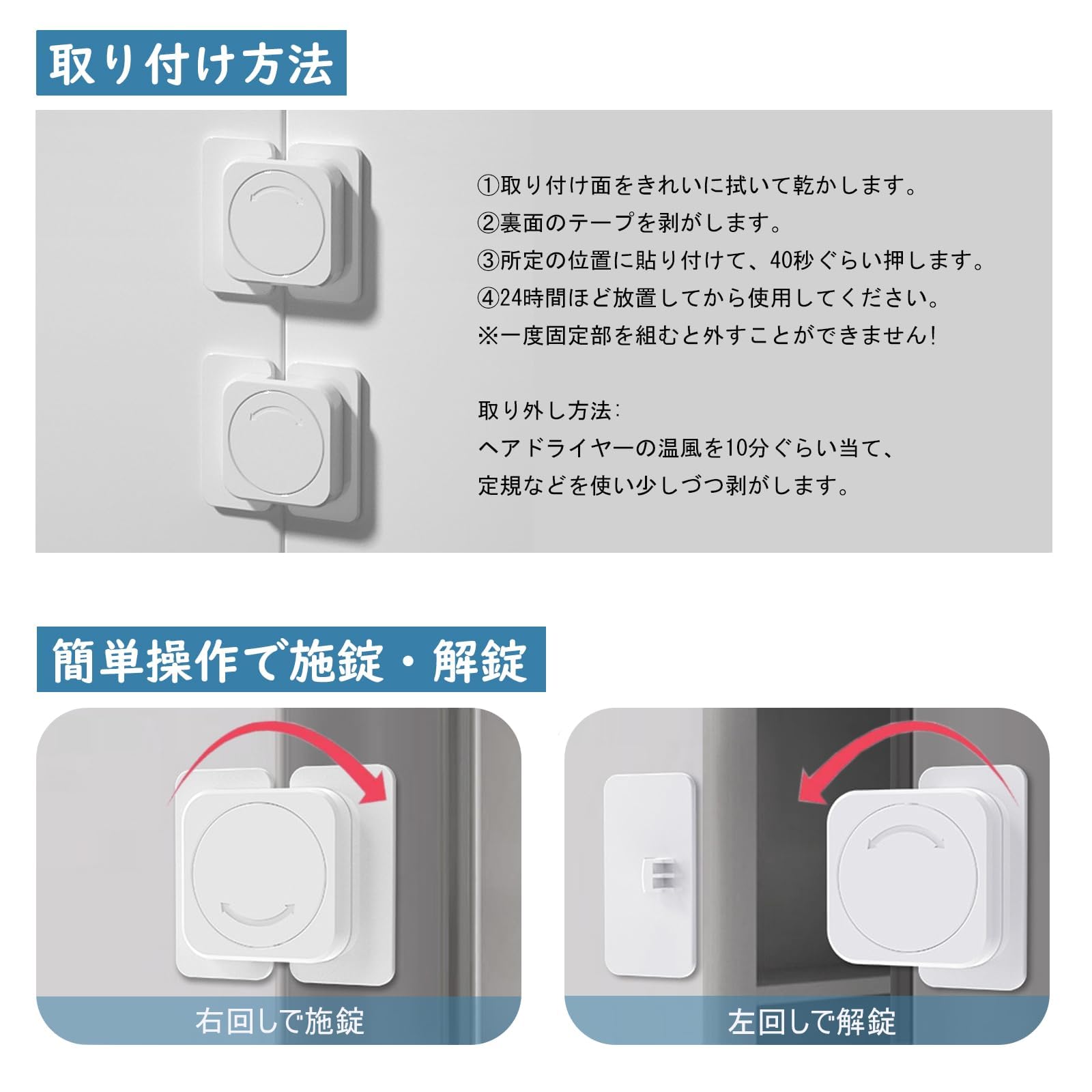 様々な場所で活躍して、扉式の棚、食器棚、冷蔵庫、引き出しなどテープで簡単に取り付けできます。