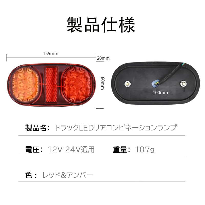 トラック テールランプ LED 12-24V 汎用 トラックトレーラー ボート用 ブレーキ レッド アンバー 2個セット