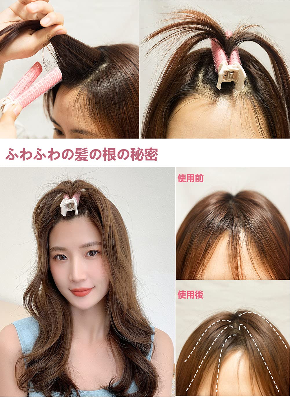 【ふわふわの前髪】ヘアルートクリップを髪の根元に固定し、ヘアドライヤーを使用して自然なヘアスタイルを完成させます。根元から髪のかさばりを増やします。そして、それは頭の輪郭を改善し、根元から髪のボリュームを増やすことができます。