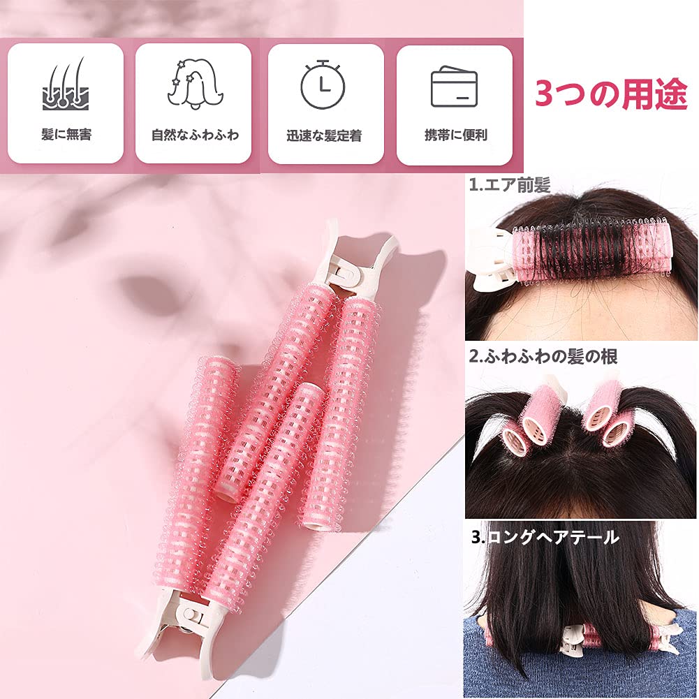 2個 くるんと前髪カーラー フルリフアリ 手巻き shefun プラスチック カーラー 小 マジックカーラー 楕円形 ふんわり ヘアカーラー クリップ JP192 (A-pink2)