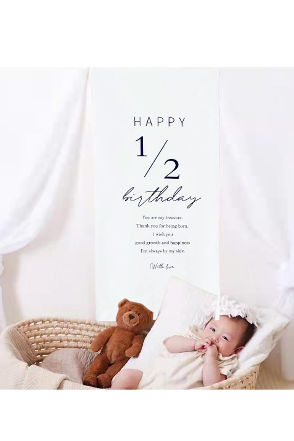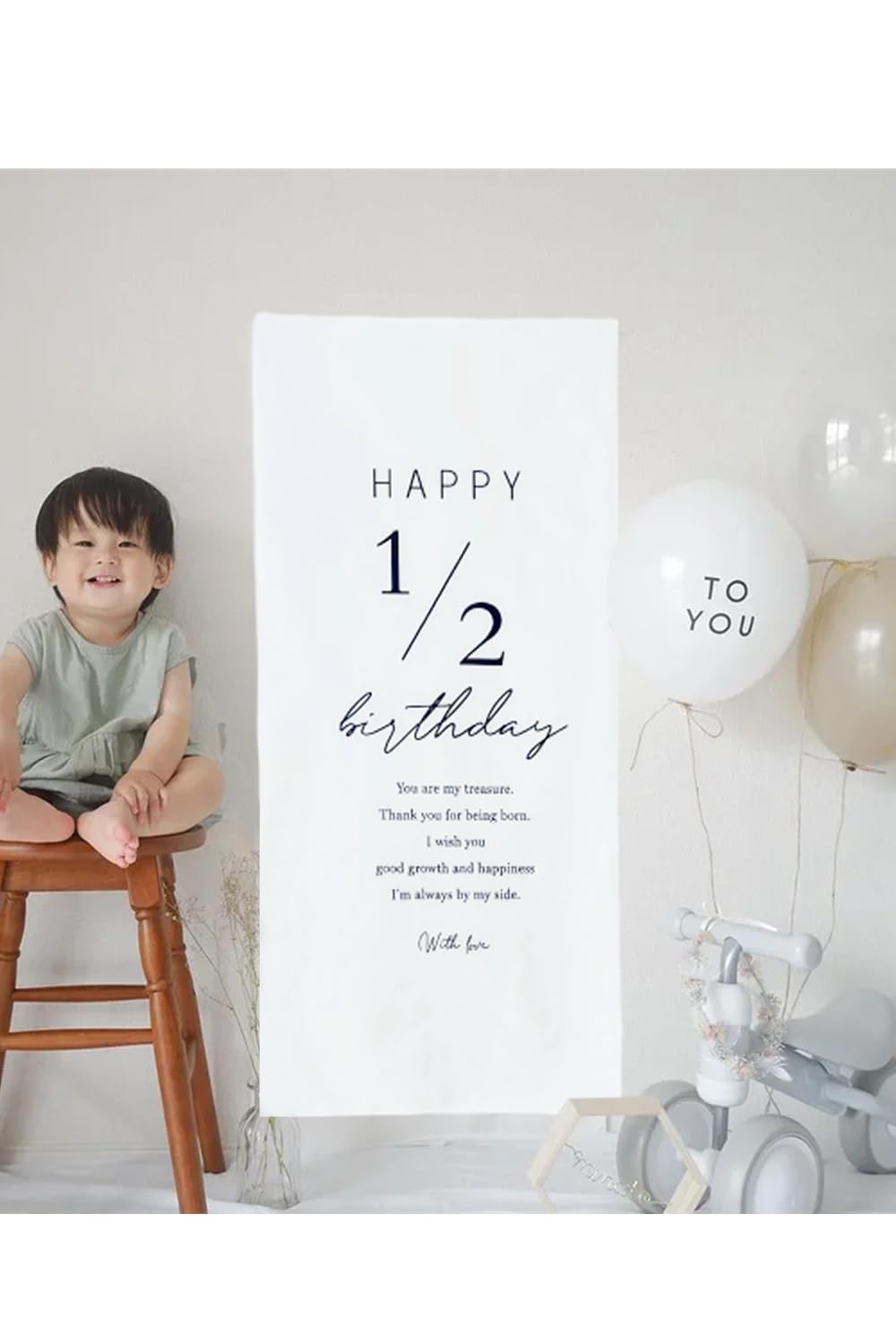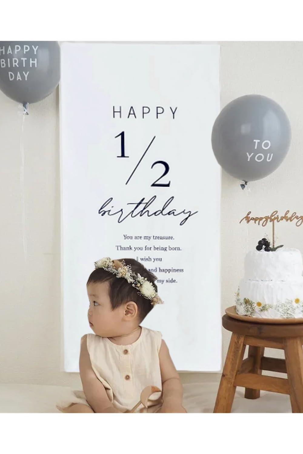 1.ハーフバースデー用タペストリー、お誕生日のお祝いを特別な日に彩る、おしゃれなハーフバースデー 飾りセットです。