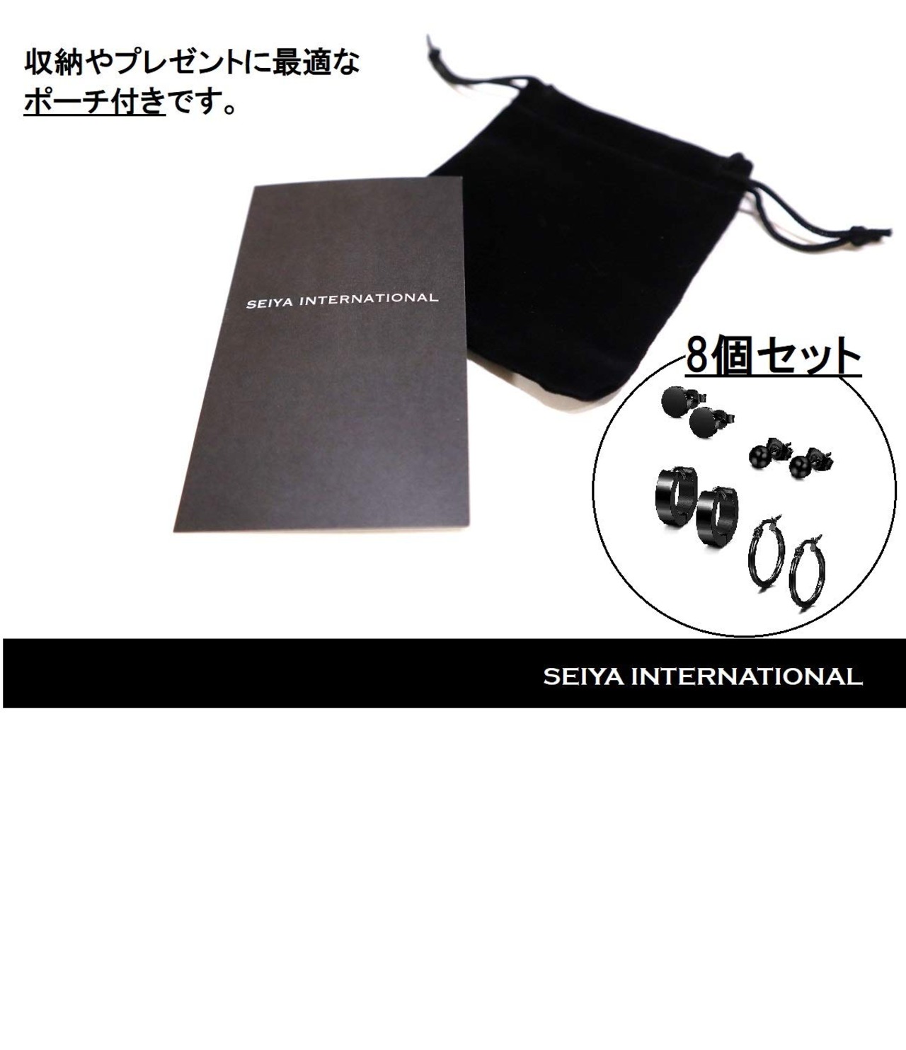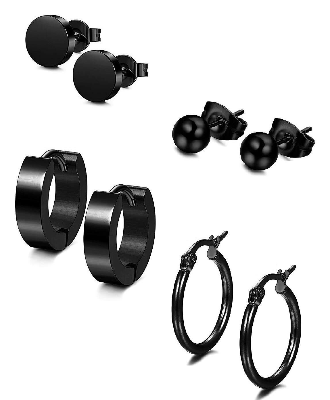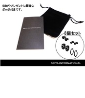 [セイヤインターナショナル] ピアス メンズ レディース 両耳用 フープ リング スタッドピアス ステンレス 黒 4ペア 8個 セット