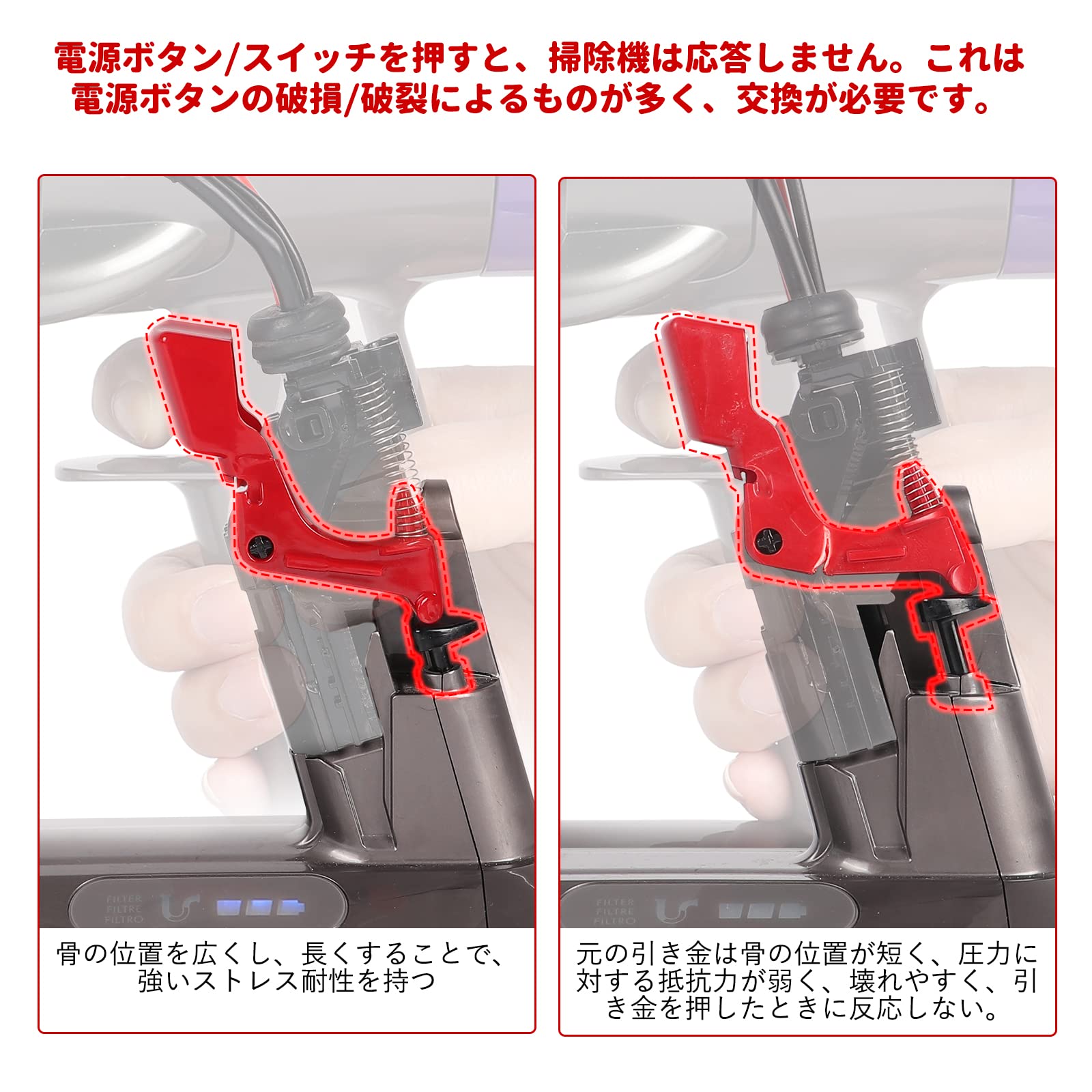 2個入りトリガー 改良強化型スイッチ交換用ダイソン V10 V11 SV12 SV14 掃除機 パーツ レッド 電源スイッチ ボタン故障修理 アクセサリー トリガーロック付き