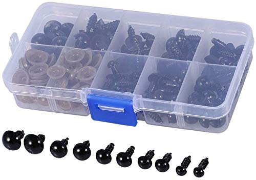 VEYLIN ぬいぐるみ目 人形の目 ドールアイ さし目 ブラック 目玉 さし鼻 動物鼻 プラスチックノーズ DIY 縫製 クラフト 手芸パーツ 手作り 100個入り