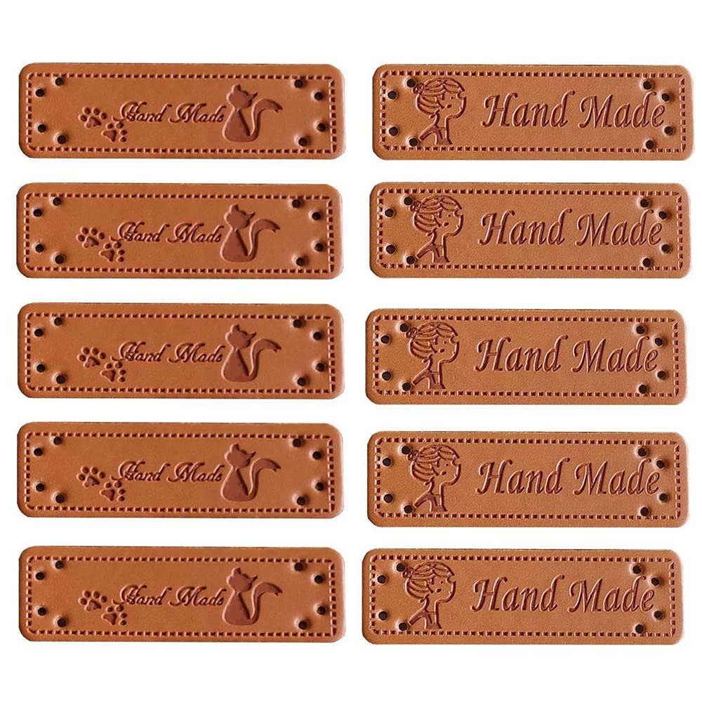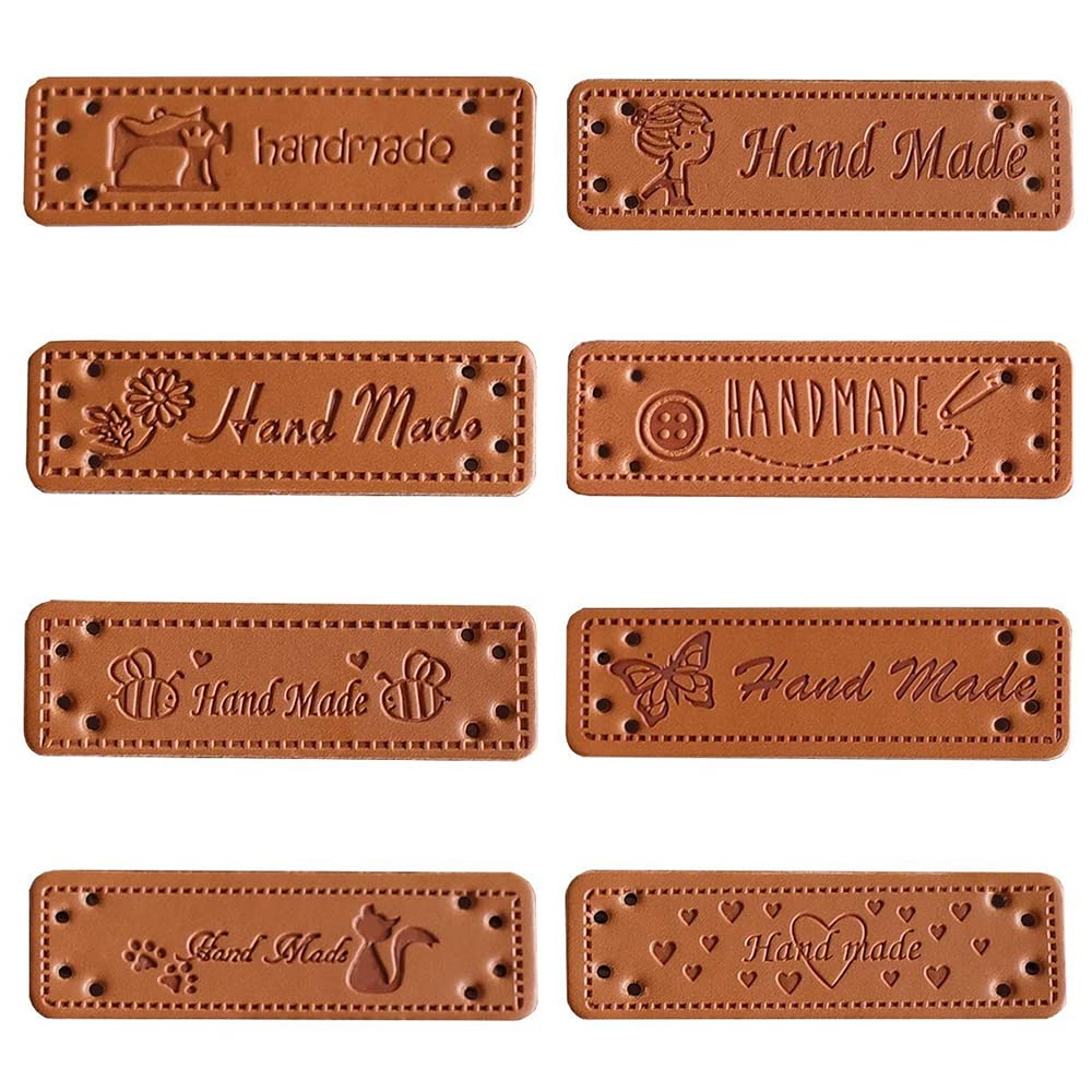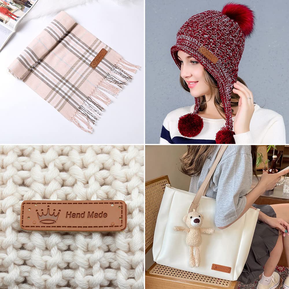 【特価在庫】革タグ 60枚入り 12種パターン レザータグ 革ラベル 刺繍タグ 合皮タグ 長方形 穴あき 英文柄 Handmade ワッペン ラベル タグ 手芸 縫製 DIY ハンドメイド 手作り ニット帽/衣類/バッグ用 装飾 飾り | GIGATERA
