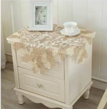 テーブルクロス‐正方形 北欧風‐レース‐透かし花柄 サイドテーブル‐丸テーブル センター重ね‐敷物‐マルチカバー‐家電カバー SweetBaku (110×110ベージュ)