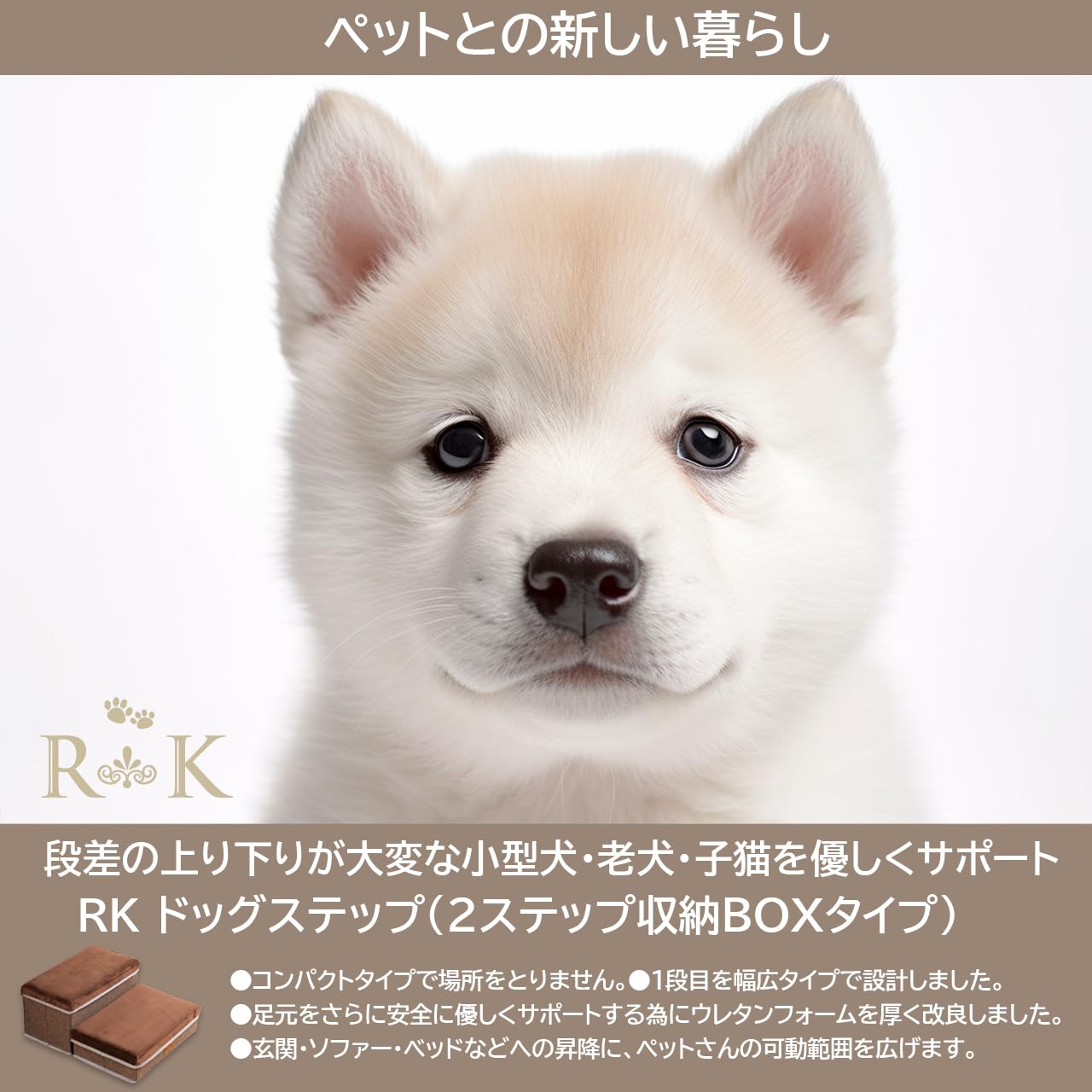 【人気】RK ペットステップ ドッグステップ ペット ステップ 階段 犬の階段 2段 タイプ 収納ボックス 組立 折りたたみ コンパクト 軽量 踏み台 スロープ 国内検品済 バニラアイボリー