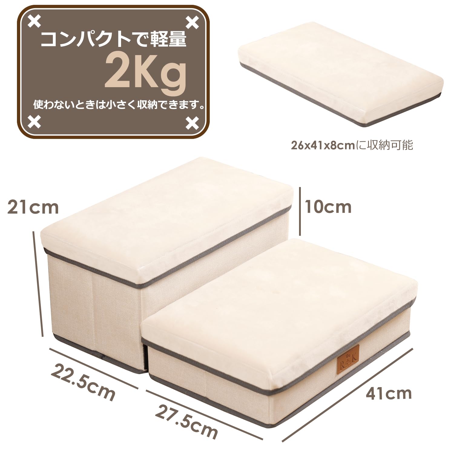 RK ペットステップ ドッグステップ ペット ステップ 階段 犬の階段 2段 タイプ 収納ボックス 組立 折りたたみ コンパクト 軽量 踏み台 スロープ 国内検品済 バニラアイボリー