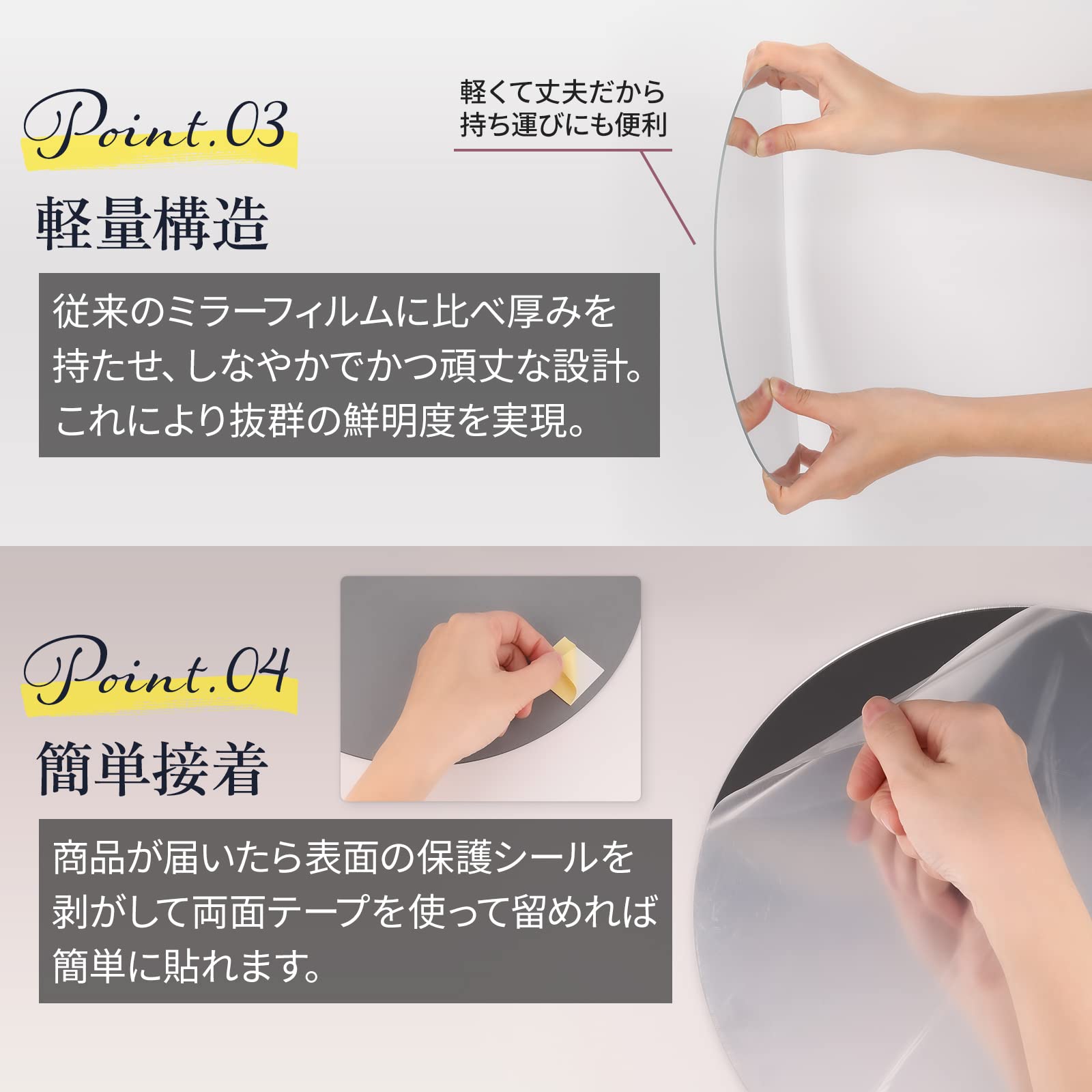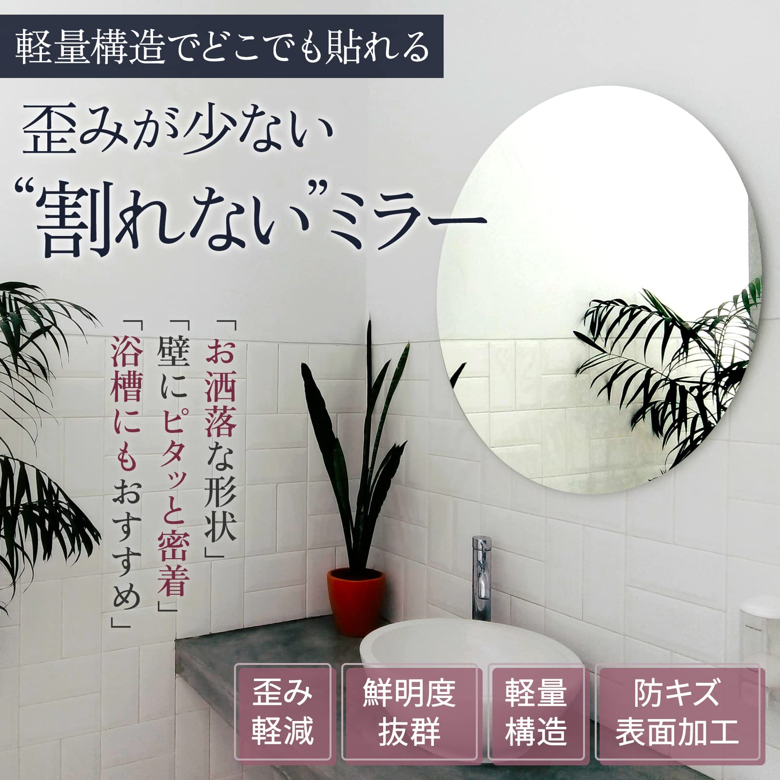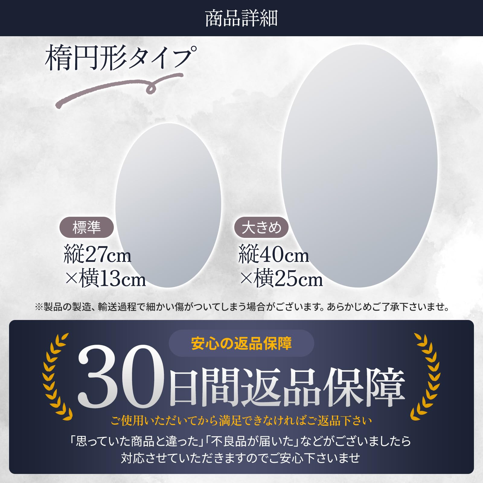 takano商店 楕円形ミラー 縦40㎝横25㎝ 標準サイズ 【ぴたっと貼れる安全ミラー】割れない鏡 貼る鏡 姿見鏡 浴室 鏡 壁掛け