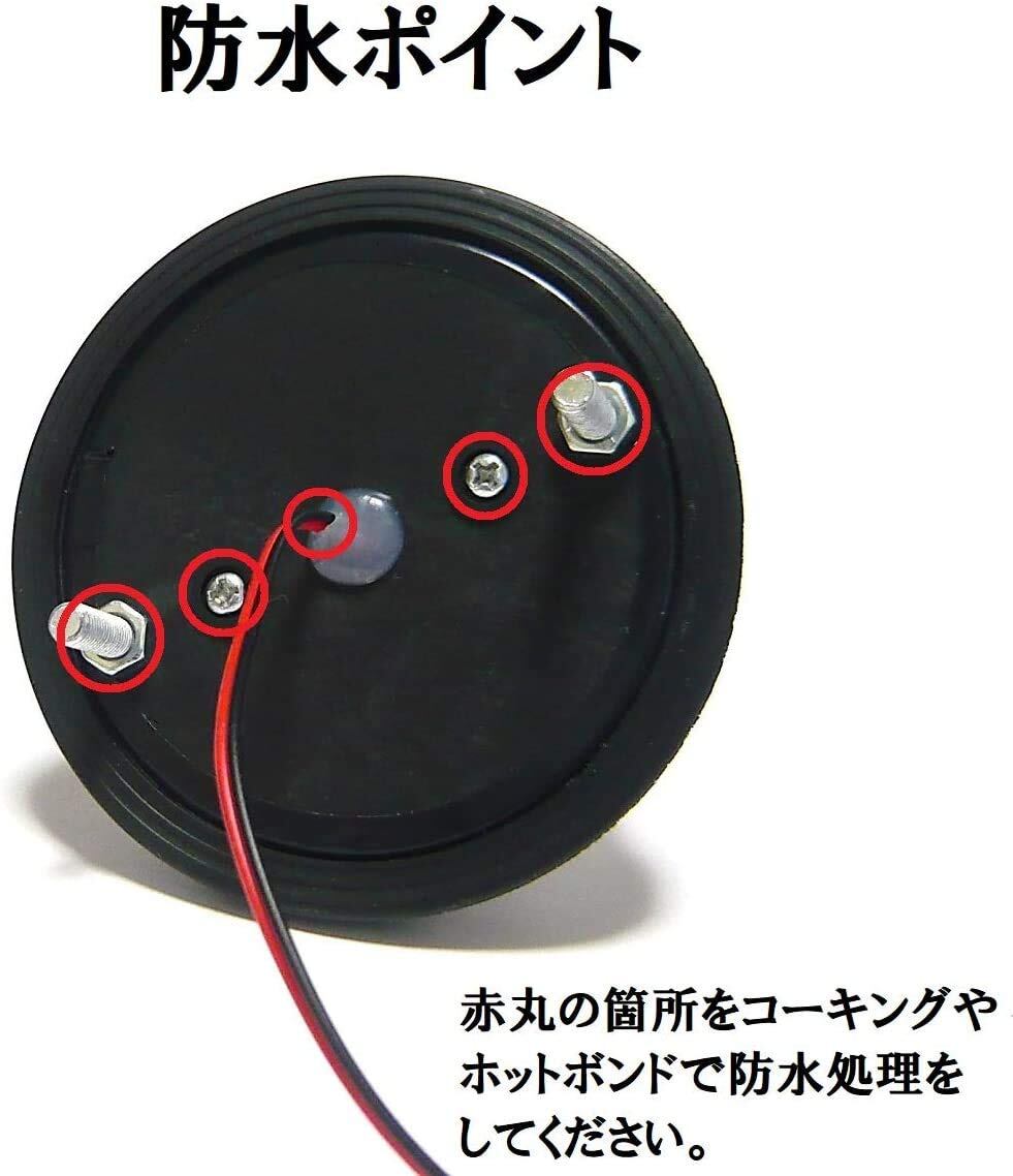 配線部分はホットボンドで防水処理済み