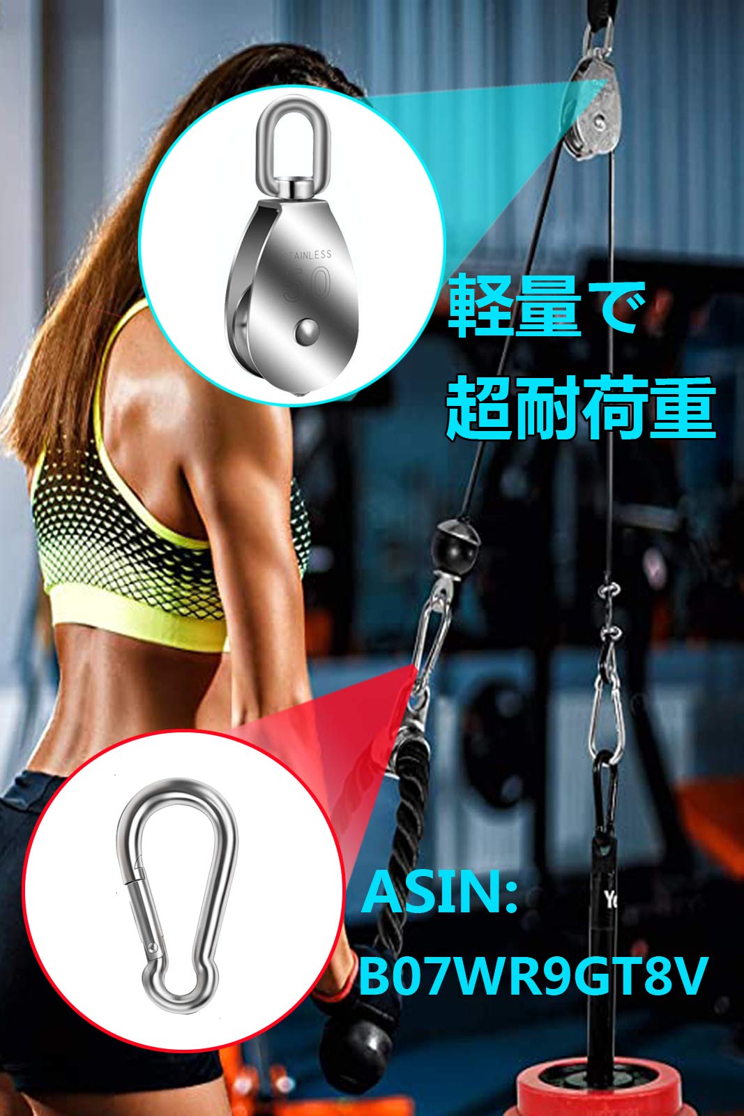【優れた機能】ロープ、ケーブル、ベルトまたはチェーンは通常に車輪、溝の中で走行します。プーリは応用力の方向を変更し、回転運動を送り、直線または運動の回転システムに機械的な利点を実現するのに使用されます。プーリーわせる事により小さな力で重い荷物も軽々上げることができます。アイデアを生かして色々な用途に使用できます。