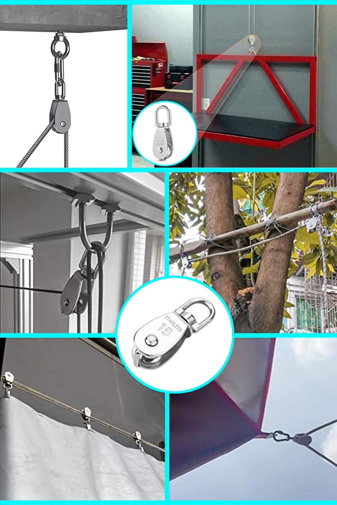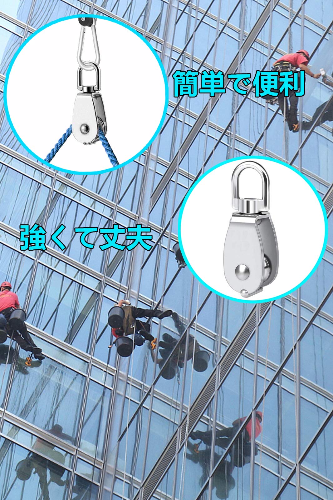 【実用的なデザイン】クレーン滑車装置は一種の巻上げ工具で、綱車とも呼ばれ、車軸での車輪またはその周囲に2つのフランジの間で溝のある軸で構成された機構です。ユニークな360度回転設計により、ロープの結び目を防ぎ、使いやすい, 滑らかなロープ滑車が優れたロープトラバースを実現。