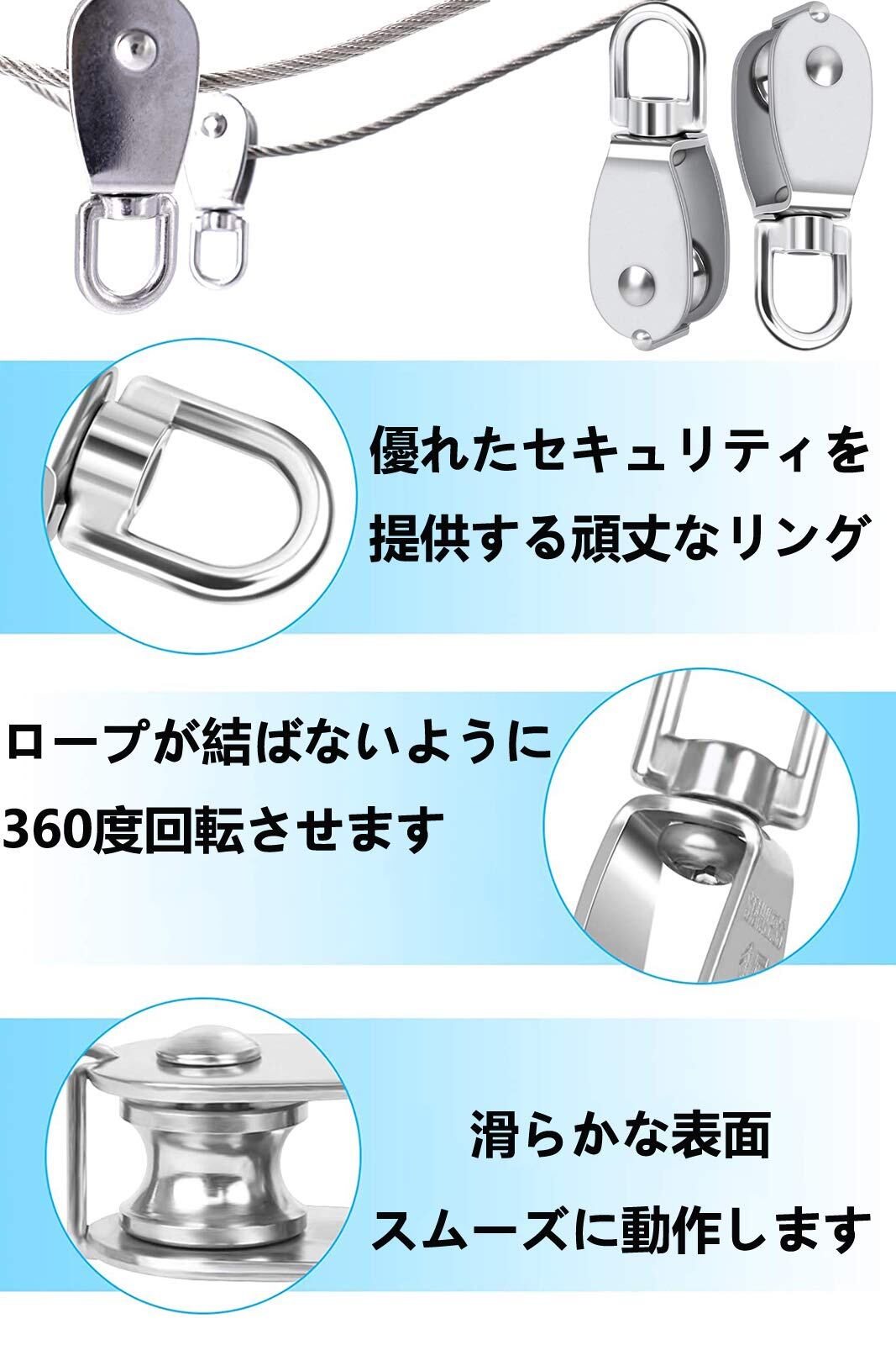 M15 クレーンプーリーブロック ステンレス プーリー 貨物輸送 SUS304 滑車ローププーリー クライミング スイベル 式 耐久耐荷重35kg 4個セット