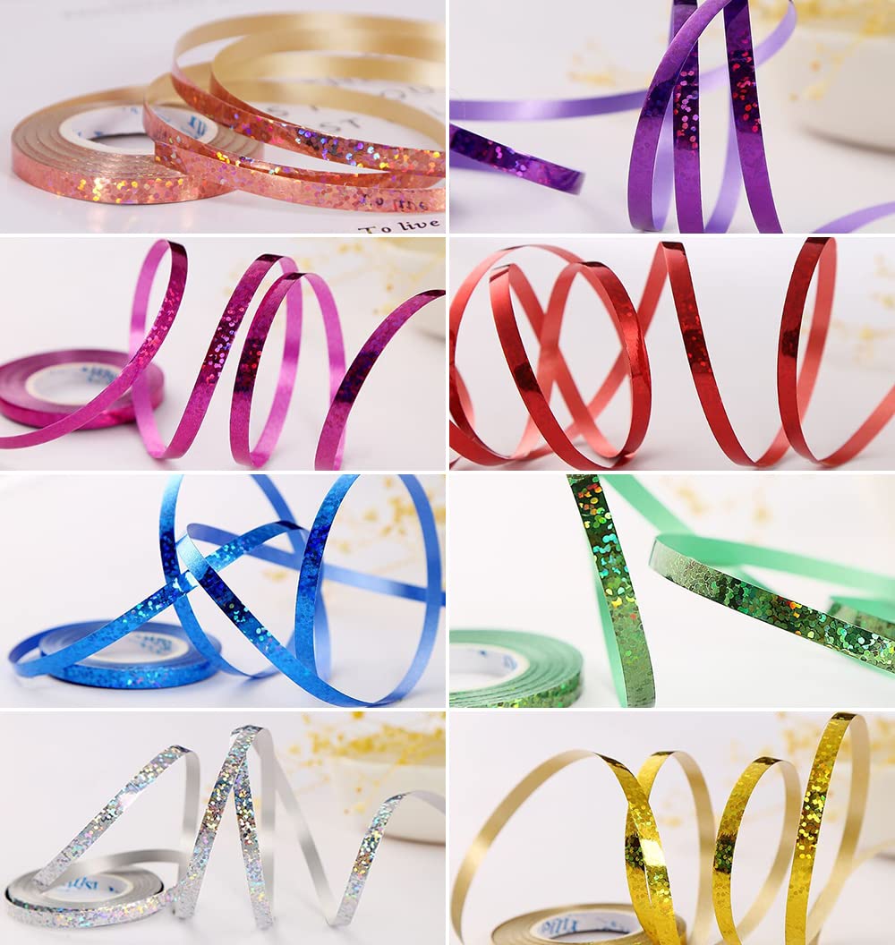 ピカピカ カーリングリボン 10巻セット 8色 長10m*幅5mm バルーンリボン 風船用 ラッピング用品 パーティー 誕生日 結婚式 プレゼント 装飾 飾り付け 手芸 DIY