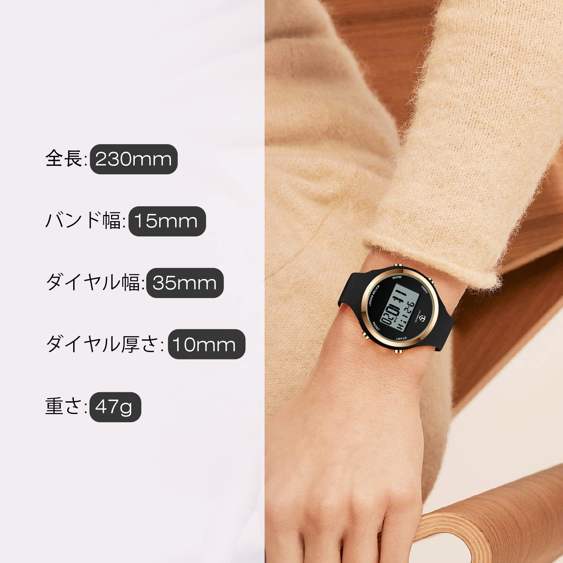?【軽くて肌に優しい着け心地の良さ】:液晶パネルには硬く透明な有機ガラスを採用し、長く使え、傷の発生を防ぐことができます。シリコン製の細ベルトは軽くて肌に優しい着け心地で、大人でも子供でも満足できる防水腕時計です。
