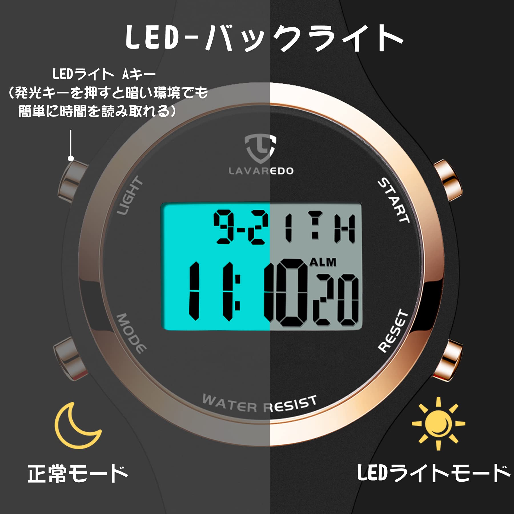 ?【多機能 スポーツウォッチ】:カレンダー、曜日表示、12/24時間制、ストップウォッチ、目覚まし時計を含む多機能デジタル腕時計です。LEDバックライト機能を持ち、暗い環境でも簡単に時間を読み取ることができます。軽量でスポーツ時計としても最適です。