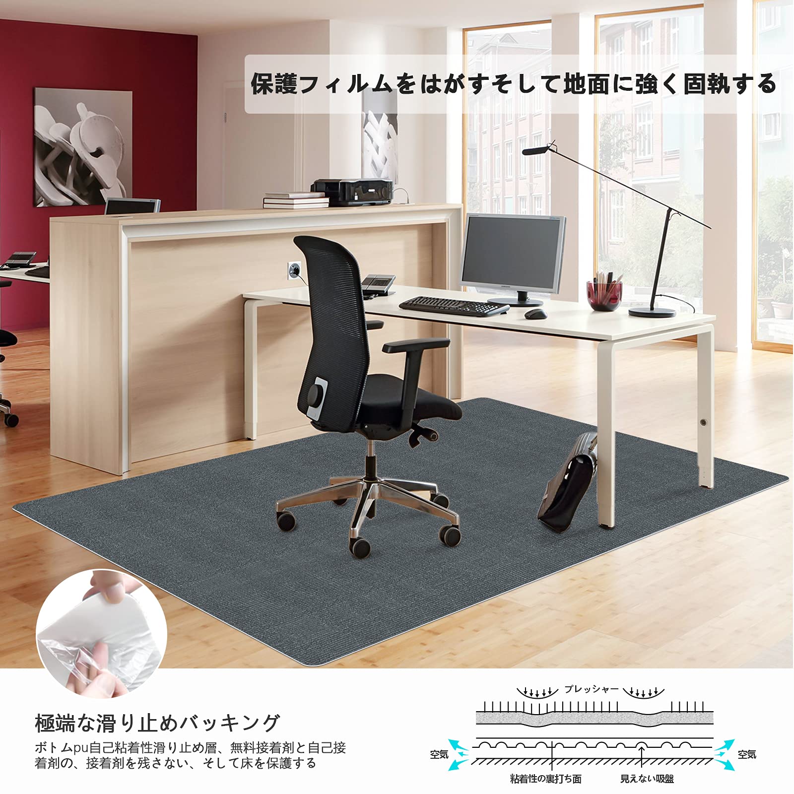 【特価】デスク チェアマット 床保護【大判サイズ130 ×160cm 】PVC Hriiiiya ずれない4mmカーペットゲーミング椅子 フロアマット床傷防止 凹みキズ・防音椅子の下に敷くパッド 防カビ机下 セルフ粘着 | GIGATERA